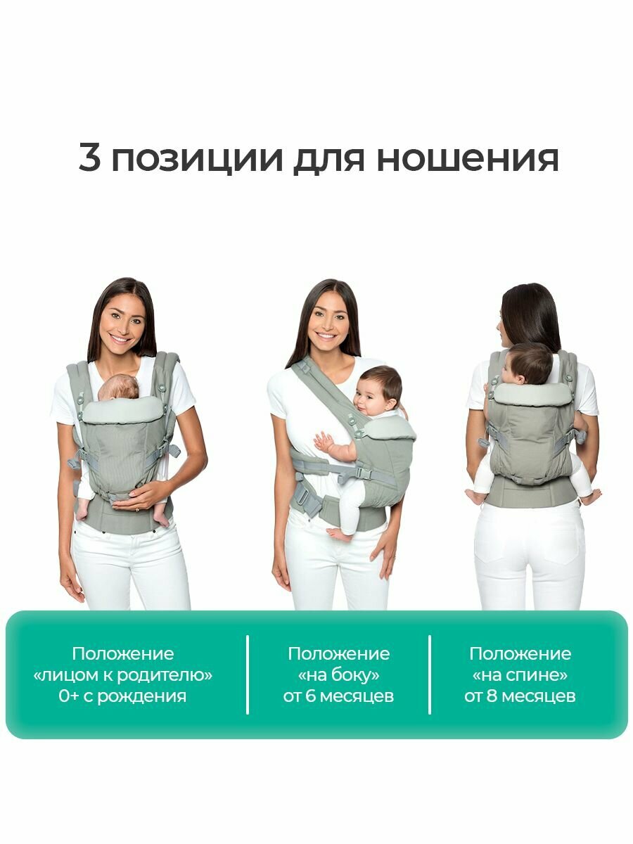 - 3 положения для переноски: спереди, на боку и сзади на спине.