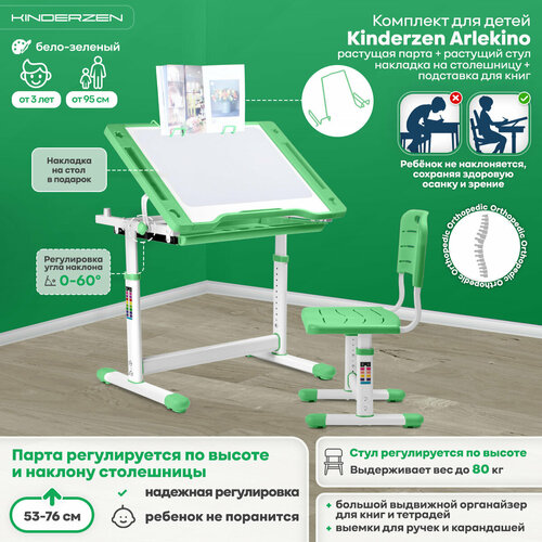 Купить Эргономичный комплект парта и стул Kinderzen Arlekino с аксессуарами белый/зеленый с доставкой по всей России.