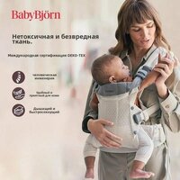 Все детали рюкзака-переноски для прогулок с младенцами BabyBjorn Harmony 3D Mesh изготовлены из специальной сетчатой ткани с уникальной 3D структурой, которая имеет приятную фактуру и не вызовет раздражения на нежной детской коже. Материал соответствует европейским стандартам качества и безопасен при контакте с кожей малыша. Ткань состоит из трех слоев, комбинация которых обеспечивает правильную циркуляцию воздуха и теплообмен, так что ребенку не будет холодно жарко. Она не маркая, устойчива к повреждениям и загрязнениям, а сам рюкзачок можно подвергать машинной стирке при невысокой температуре, если использовать щадящие моющие средства.
