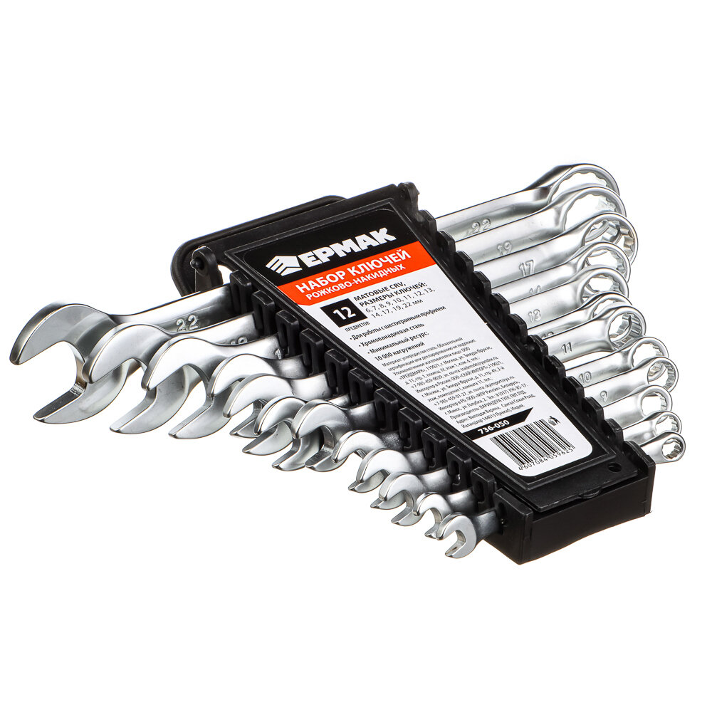 Ермак Набор ключей рожково-накидных, 12 предм, 6-22мм, матовые CRV, пластик холдер: сравнение цен, характеристики, фото, актуальное наличие и цены.