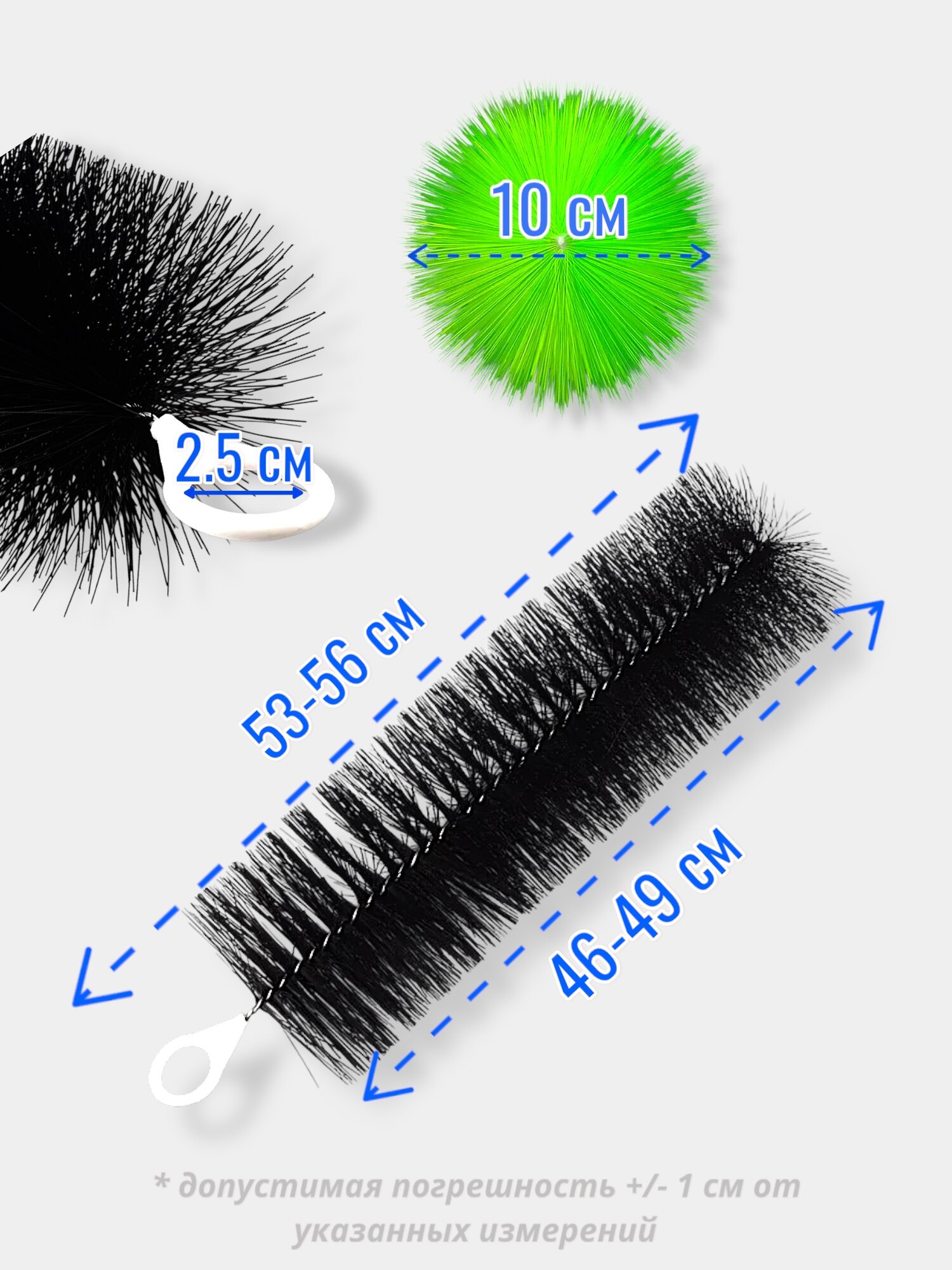- Материал: щетка - ПВХ, сердечник - нержавеющая сталь марки 304 (1.6мм)