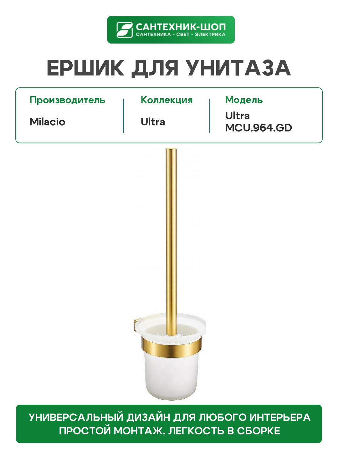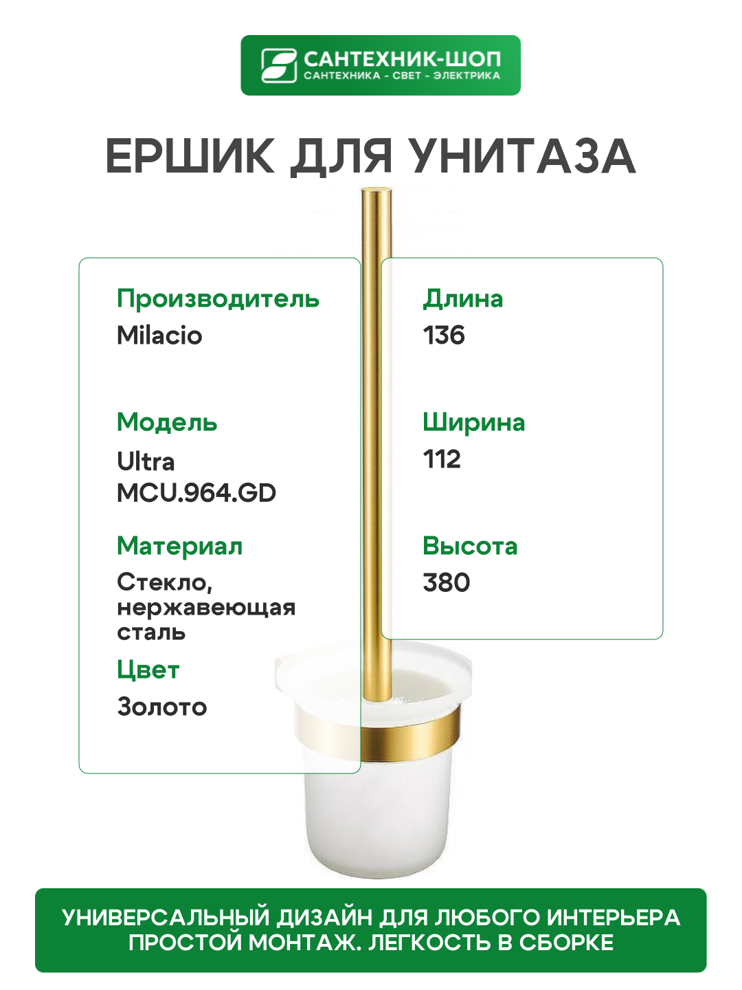 Ершик для унитаза Milacio Ultra MCU.964. GD Брашированное золото: сравнение цен, характеристики, фото, актуальное наличие и цены.