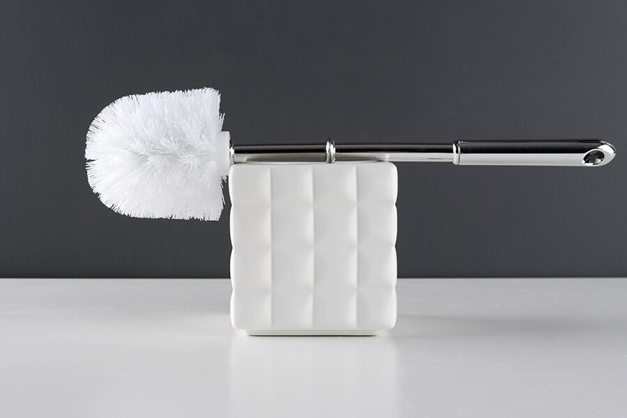 Белоснежный ершик для туалета Santonit Quadratto напольный 790-11 кубической формы выглядит невероятно стильно и современно. Изделие такого оригинального дизайна подойдет для оформления интерьера в стиле лофт, хай-тек. Четкие геометрические формы аксессуара также непременно подойдут для приверженцев современного минималистичного дизайна. Белоснежная поверхность ершика, разделенная на множество квадратов, повторяет ритм, задаваемый кафельной плиткой, и позволяет интерьеру иметь актуальное и гармоничное звучание. Ершик можно чистить с использованием деликатных моющих средств и мягкой ткани. Ершик напольный Verran Quadratto 790-11 белый Ершик напольный Verran Quadratto 790-11 белый