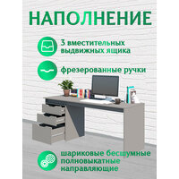 Стол Есэндвич Лаворо - стол с вместительной тумбой. • Ящики оснащены бесшумными шариковыми полновыкатными направляющими, что обеспечивает их плавное и бесшумное открывание. • Кромка столешницы обработаны лентой ПВХ толщиной 2 мм- долговечность и безопасность конструкции. Благодаря этому, нет острого края и сколов. Стол так же можно отнести к письменным, так как имеет большую столешницу. • Размер стола: 180*75*60 см (ш*в*г). • Максимальная нагрузка на стол до 50 кг, нагрузка на ящики до 15 кг. Многообразие цветовых решений поможет Вам легко подобрать вариант, подходящий Вашему домашнему интерьеру. Универсальная сборка, что позволяет собрать тумбу на правую или на левую сторону. Стол поставляется в разобранном виде, в заводской упаковке. Требуется сборка. Инструкция по сборке в комплекте.