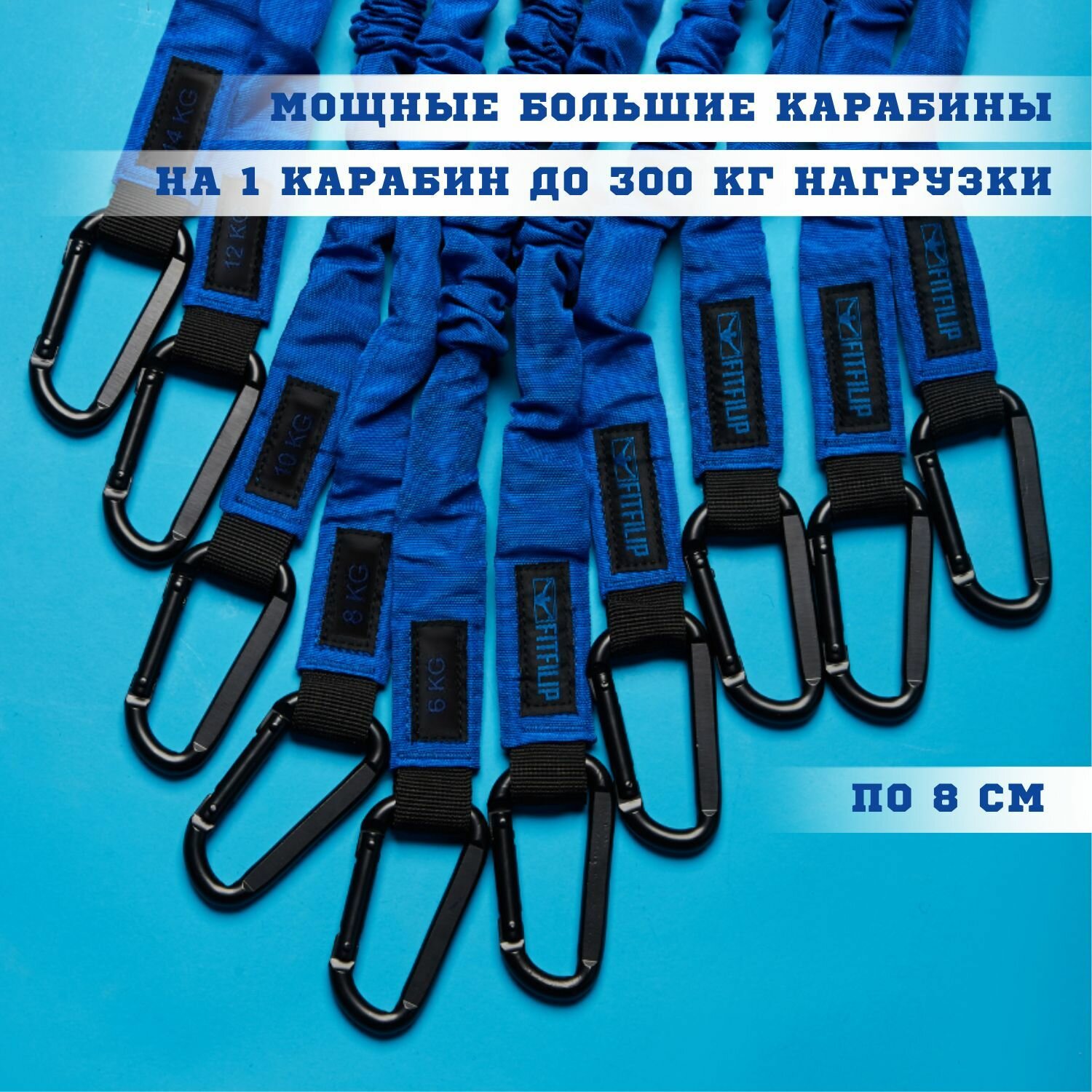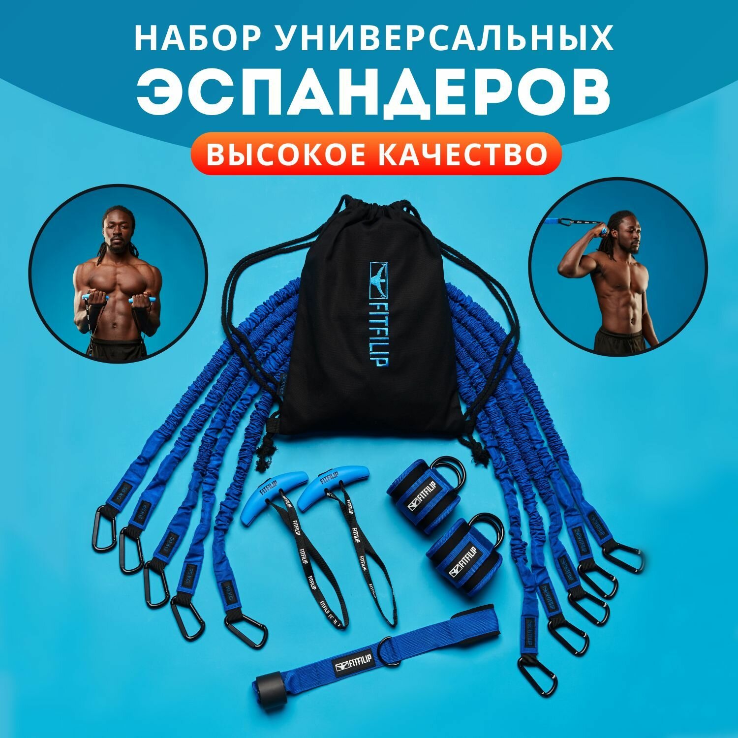 Почему вам не стоит покупать набор трубчатых эспандеров FITFILIP Zima Blue? Ответ может быть только один - вы ищите бюджетный, простой спортивный набор и вам не важны детали. Эксклюзивный комплект из 11 предметов Zima Blue - которому нет равных, создан с внимательным подходом к каждому предмету из набора. Мы предлагаем покупать этот спортивный многофункциональный тренажёр только тем, кто хочет получать результат во время тренировки с лучшими изделиями и с большой эффективностью в поставленных задачах. Такой продуманный набор амортизаторов эспандеров для фитнеса прослужит вам долгие годы, принесёт огромную пользу в спорте или укреплению, восстановлению вашего здоровья. Комплект разработан таким образом, что идеально подходит для мужчин и девушек любого возраста, профессионалам в различных видах спорта и новичкам для домашнего использования, для похудания или набора массы. Все пять трубок эспандеров с разной нагрузкой 6кг, 8кг, 10кг, 12кг, 14кг, суммарно 50кг. Каждая трубка сделана из натурального малазийского латекса по 140 см длинной и помещены в плетёные прочные защитные тканевые чехлы и имеют возможность растягиваться до пяти метров без потери качества. Такое растяжение позволит выполнять любые упражнения без сковывания с полной амплитудой движения. Представьте себе ситуацию, если например вы встанете на эспандер одной или двумя ногами и начнете поднимать руки. Дешевые аналоговые эспандеры не растягиваются так далеко, чтобы даже поднять руки вверх, а если будете продолжать тянуть дальше, они просто разорвутся, но вам не нужно об этом беспокоиться, мы позаботились о растяжении и используем лучший латекс и защиту от разрыва. Нейлоновая защита плетеных чехлов, будет также защищать от трения по телу во время тренировки, от случайных ударов, а так же от разрыва латексных трубок. Большие мощные чёрные карабины по 8 см размещены на каждом трубчатом эспандере и сделаны из прочной стали, они не будут гнуться или ломаться, всего в наборе 10 карабинов. Такие карабины позволят крепиться за широкие предметы дома, на спортивной площадке или в тренажёрном зале. Эргономичные многофункциональные рукоятки со стропами сделаны с учётом анатомического строения кисти человека, каждая ручка способна выдерживать по 180 килограммов, имеют возможность менять 4 виды хвата, менять направления углов, вращаются по заданному направлению движения, задействуют новые мышечные волокна. Сквозное пронизывание стропом позволяют менять направление изгиба, но полностью исключает возможность проворачивания и выскальзывания рукояти за счёт специального софт тач покрытия. С парой манжет из комплекта тренировать ноги само удовольствие. Силовые спортивные манжеты для щиколотки оборудованы по два широких и прочных металлических кольца, за которые крепятся к эспандеру. Мягкая внутренняя сторона манжета рассчитана на большие веса, поэтому не будет давить на щиколотку при выполнении упражнений. Крепкая липучка гарантированно всегда останется закрытой во время тренировки и не сможет раскрыться при любых движениях, так как мощных крепежных колец имеется 2 и на них распределяется равномерно вся тяговая нагрузка. Длинное якорное крепление с широкими стропами имеет несколько видов крепежей для удобства домашних тренировок. Дверной якорь для крепления кольцевых жгутов поз