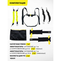 Наплечные ремни, входящие в комплект, позволяют надежно зафиксировать тренажер на теле спортсмена. Наличие механизмов регулировки позволяет подстраивать ремни под свой рост и размер.