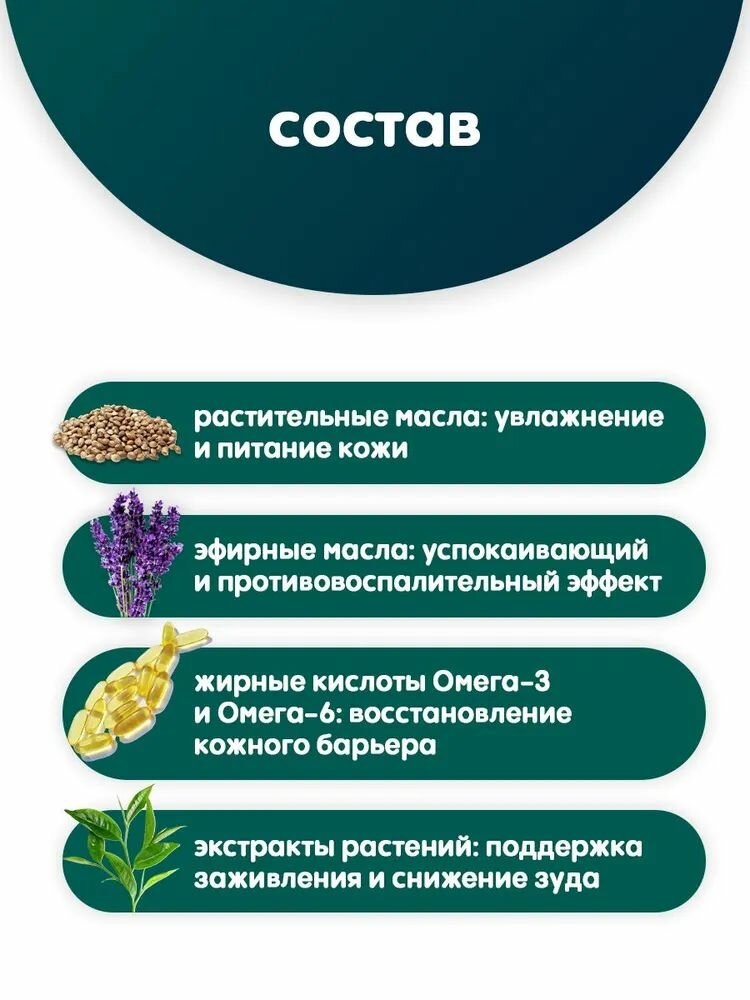 - Состав:- Богат натуральными активными компонентами, включая:- Эфирные масла (розмарин, чайное дерево, лаванда и др.).