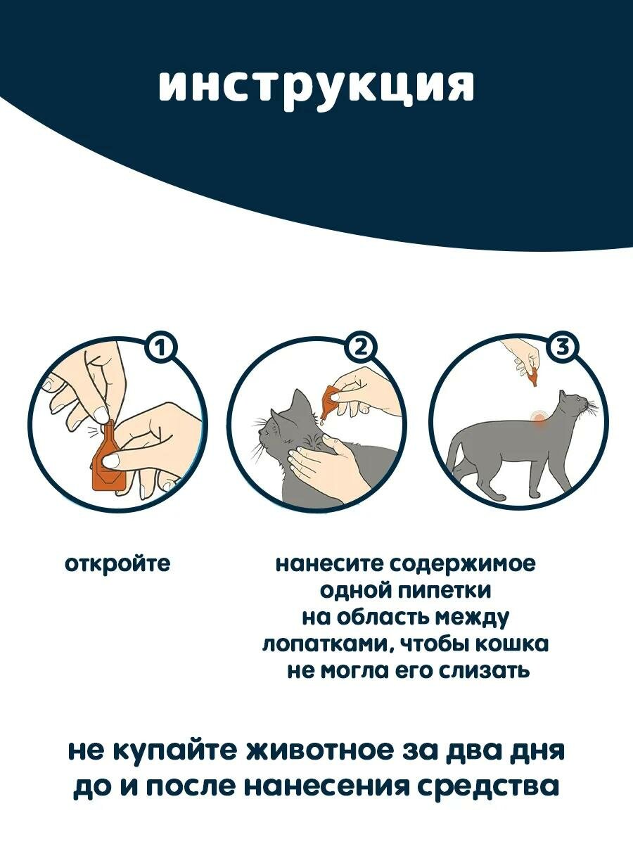 - Легкость использования: наносится на кожу между лопатками (1 пипетка в неделю).