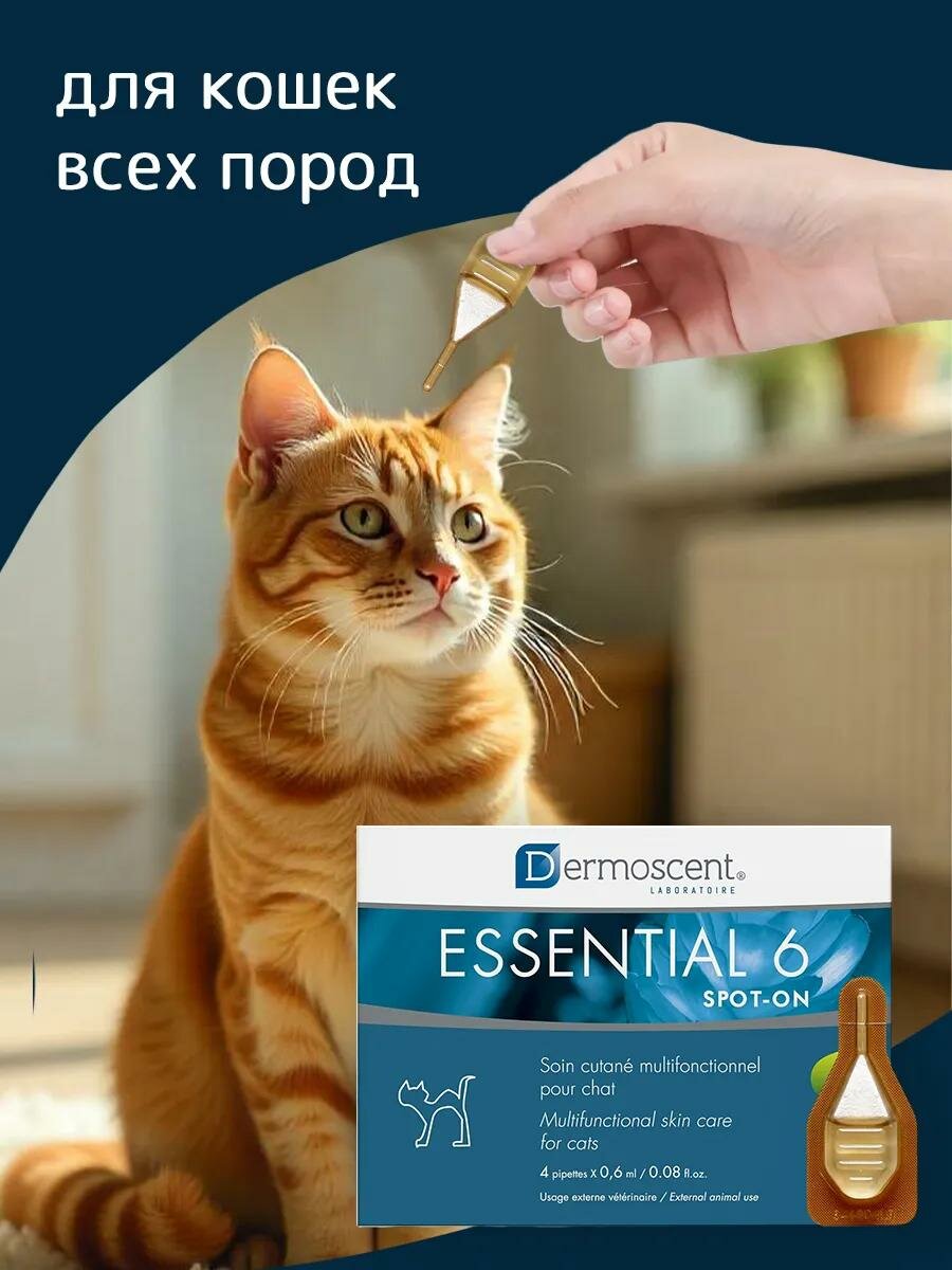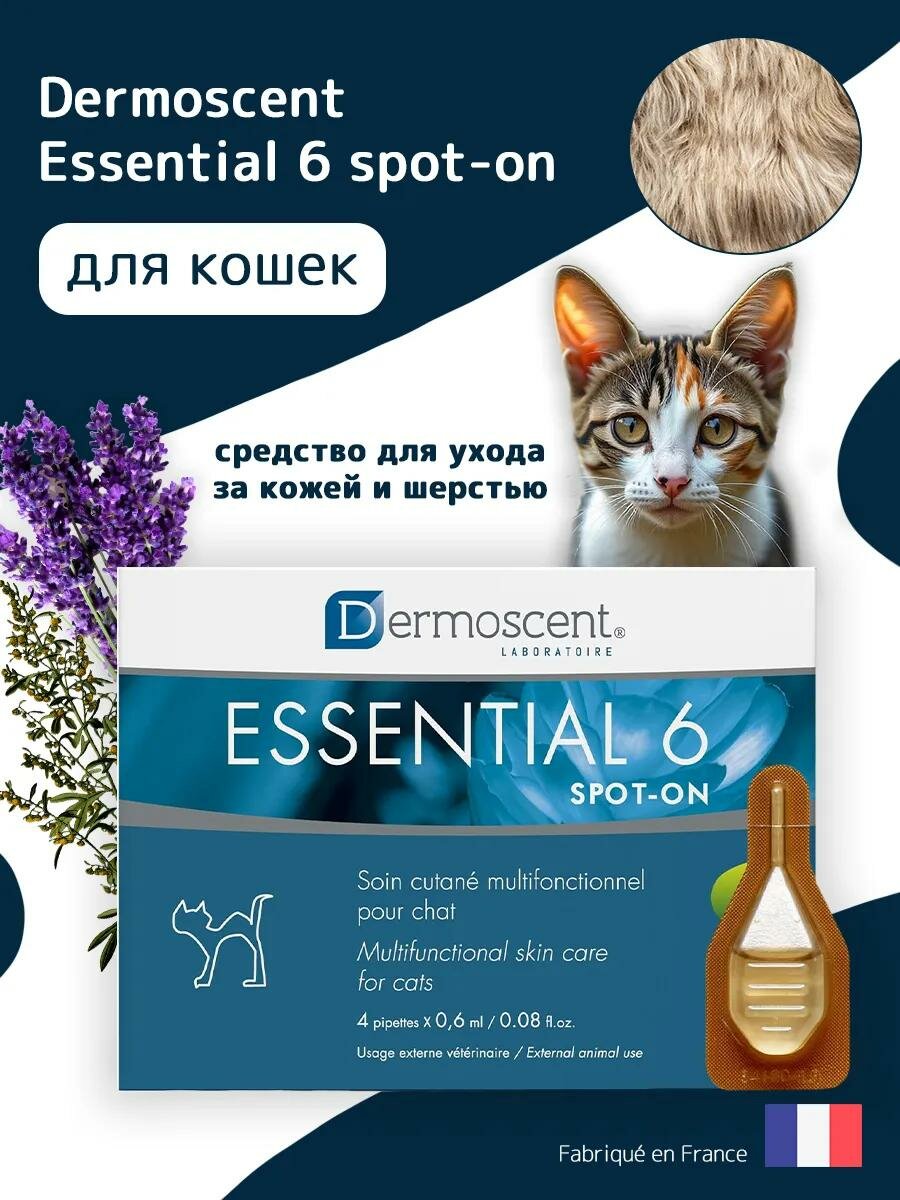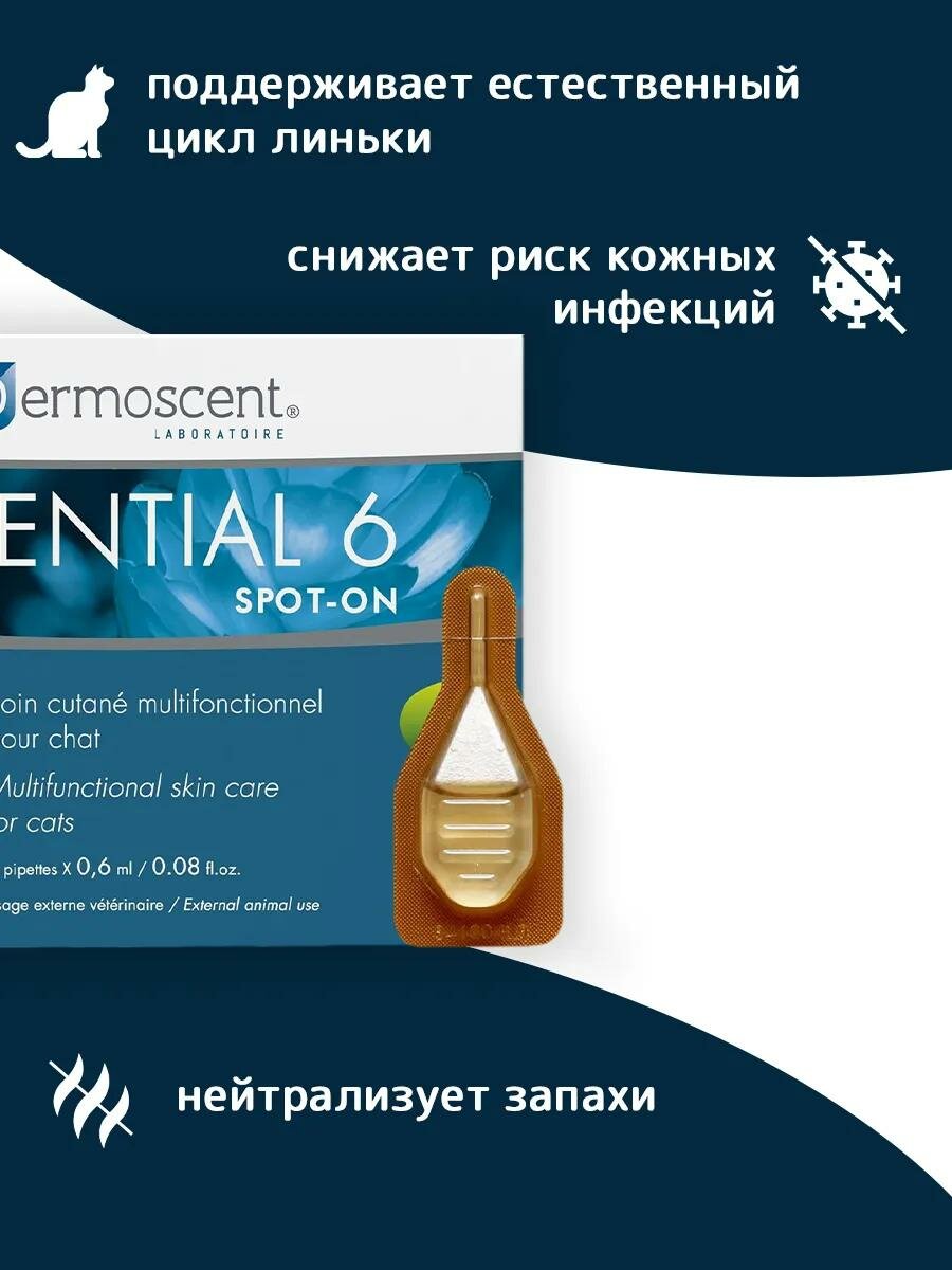 Dermoscent Essential 6 spot-on for cats — это дерматологическое средство для ухода за кожей и шерстью кошек. Оно разработано специально для поддержания здоровья кожи, улучшения состояния шерсти и решения таких проблем, как сухость, перхоть, неприятный запах, сезонная линька. Подходит для всех пород кошек, включая чувствительных к внешним раздражителям.