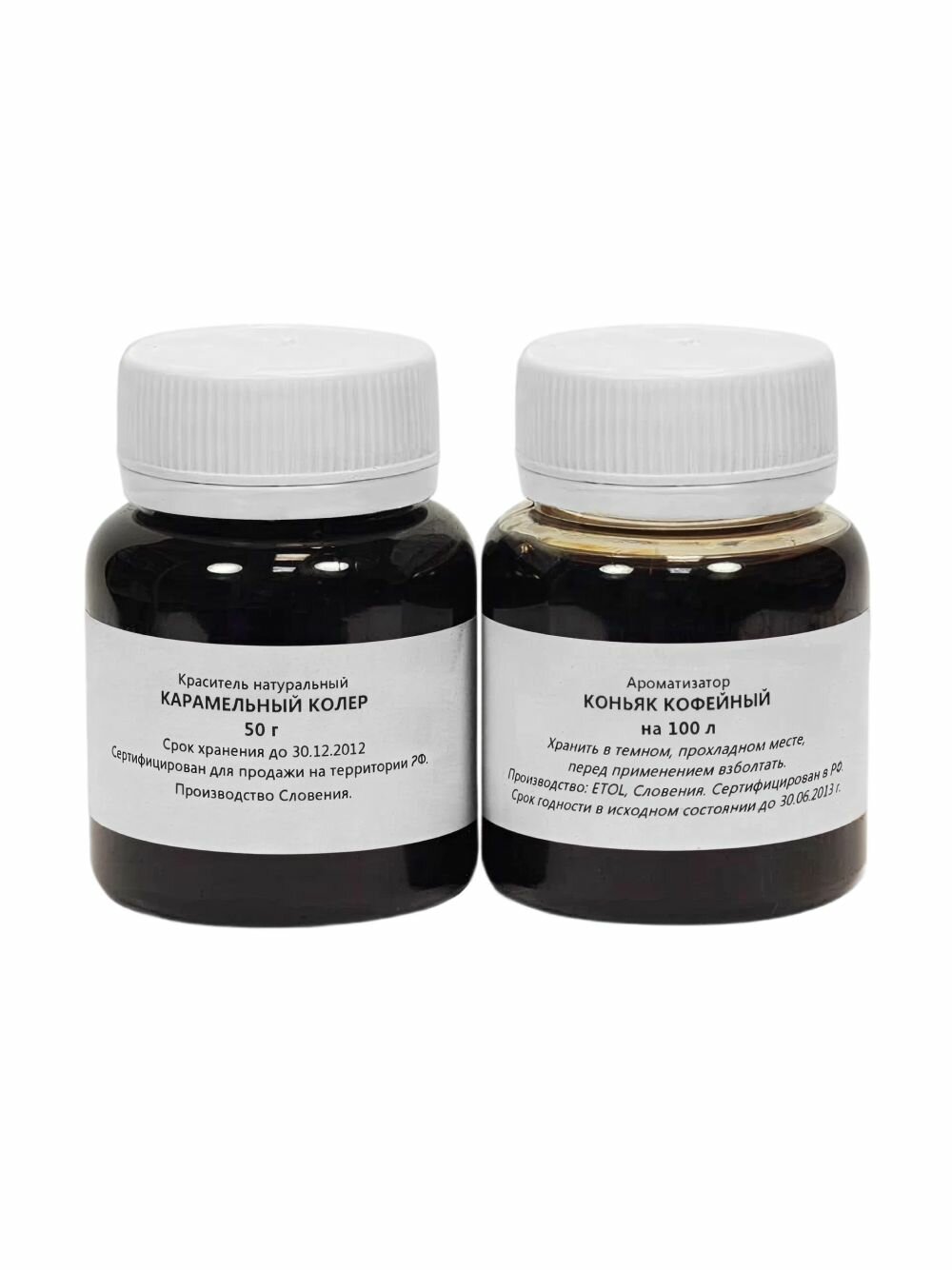 - Состав: пищевые ароматизаторы "Коньяк" и "Кофе", карамельный колер.