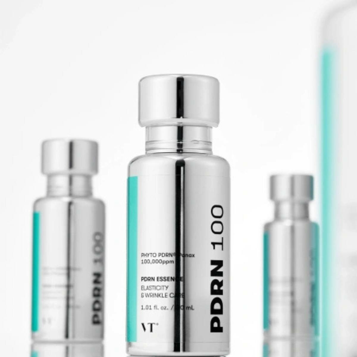 Эссенция VT Cosmetics PDPN Essence 100, обогащенная PHYTO PDRN, полученным из корейского женьшеня, представляет собой веганскую альтернативу традиционным препаратам.
