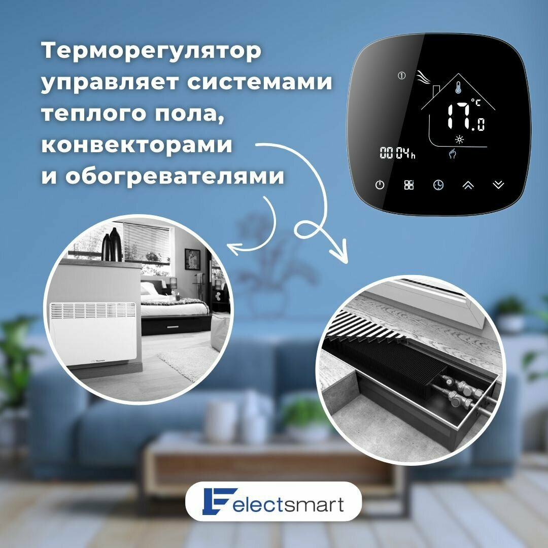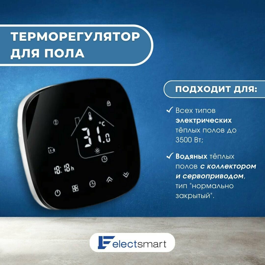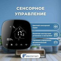 Купить EST-400-YM Терморегулятор для теплого электрического и водяного пола, универсальный термостат с датчиком, цвет: черный. Cенсорное управление, 3500 Вт, ELECTSMART с доставкой по всей России.