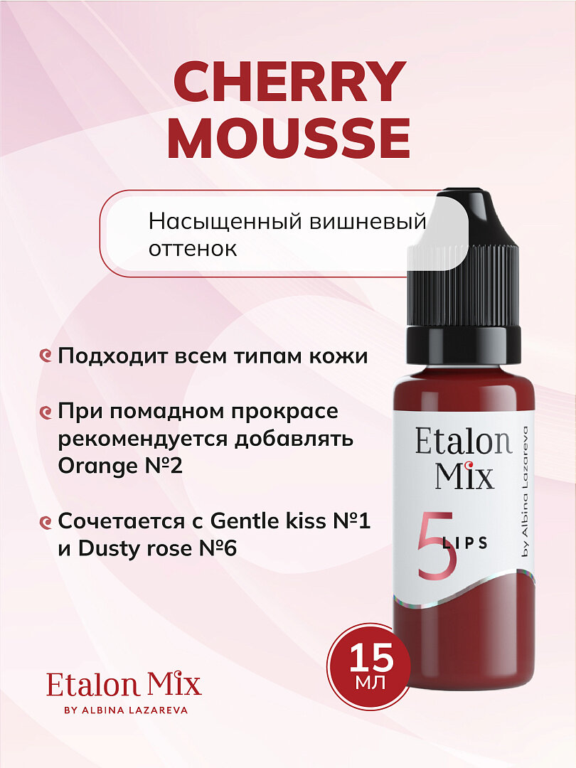 Пигмент Etalon Mix для перманента, татуажа губ №5 Вишневый мусс, 15мл. Пигменты Альбины Лазаревой.: сравнение цен, характеристики, фото, актуальное наличие и цены.