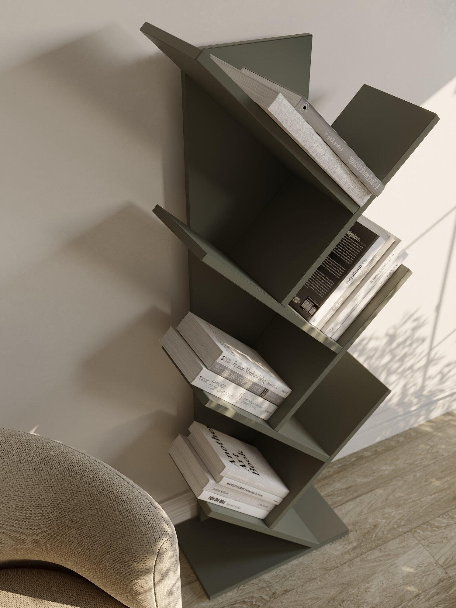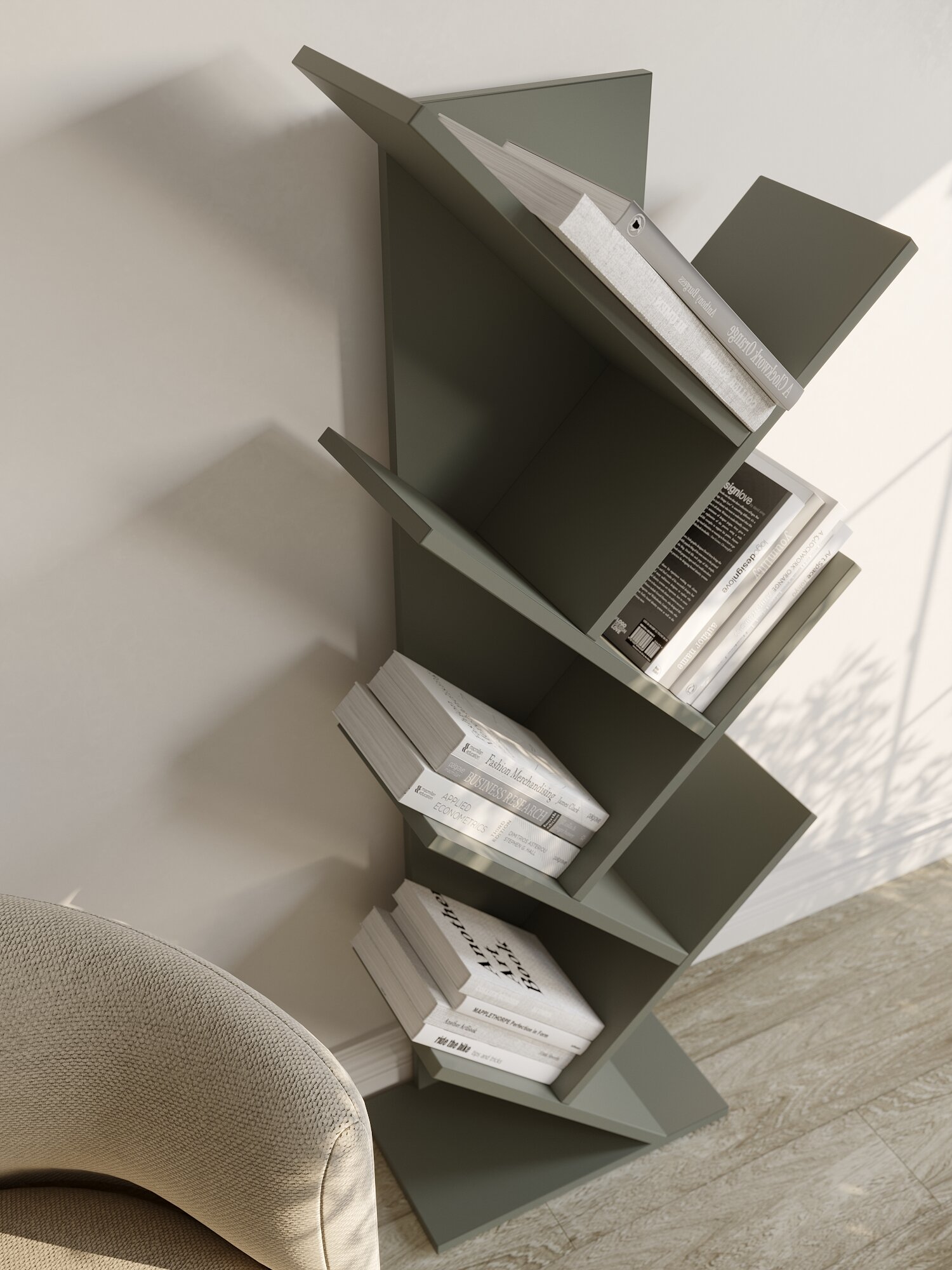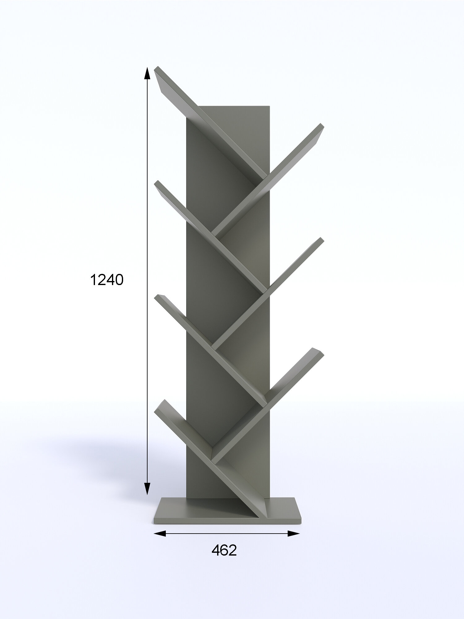 Открытая книжная полка-стеллаж 6-7 секций серого цвета подойдет для детской комнаты, гостиной, коридора (прихожей), кухни. Стеллаж узкий высокий не занимает много места в квартире или офисе, можно разместить вдоль любой стены или поставить в угол. Полки для книг расположены елочкой, украшают интерьер в стиле лофт. Этажерки заменяют книжные шкафы и стеллажи монтессори. Ширина деревянной напольной этажерки почти 50см (46), высота 124 см, полки выдерживают вес до 8кг. Наши елки полки производятся в России из ЛДСП премиум-класса Egger, 16мм. Сборка стеллажа не требует особых навыков или инструментов, что делает его использование максимально удобным для вас!