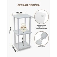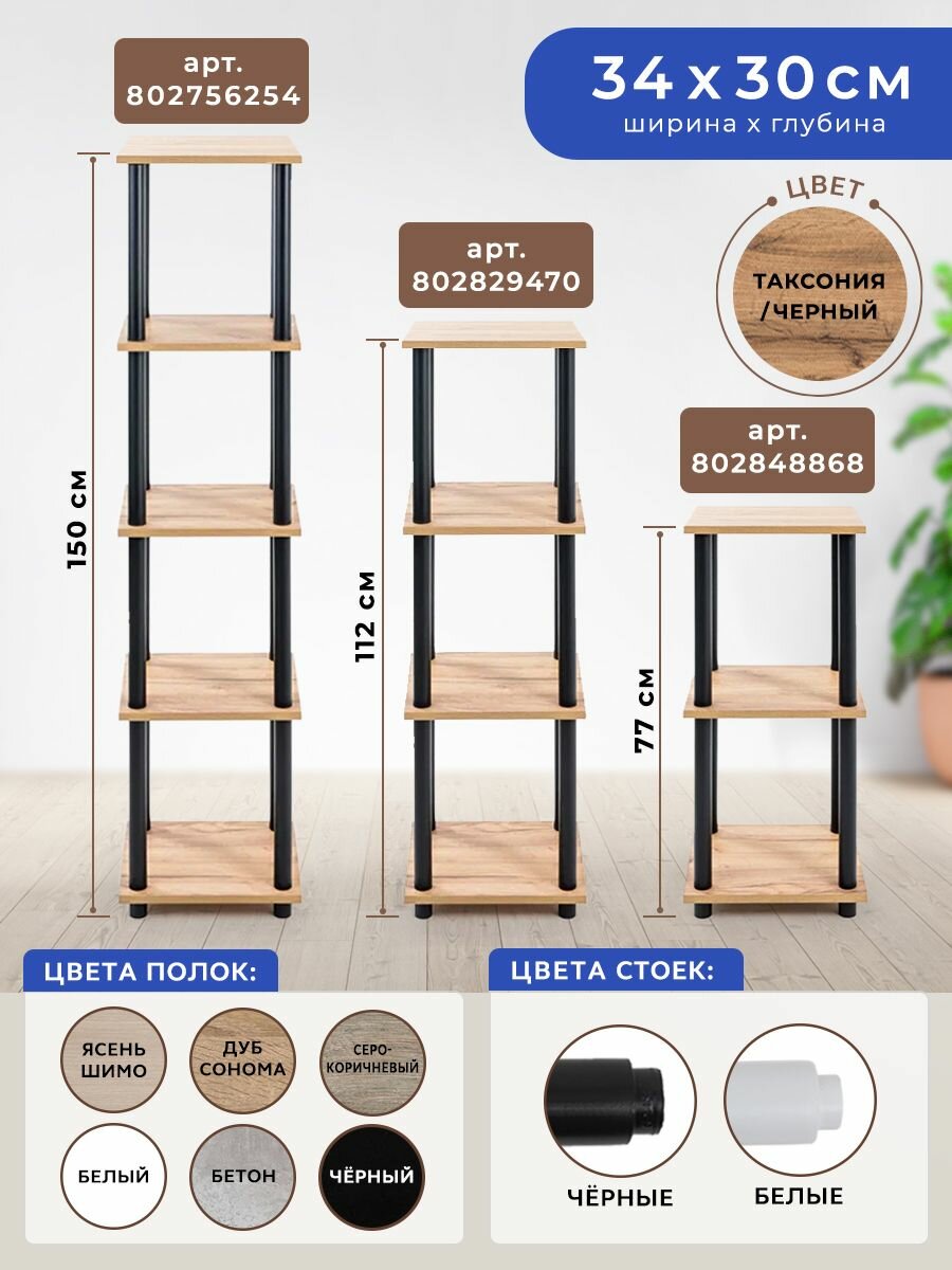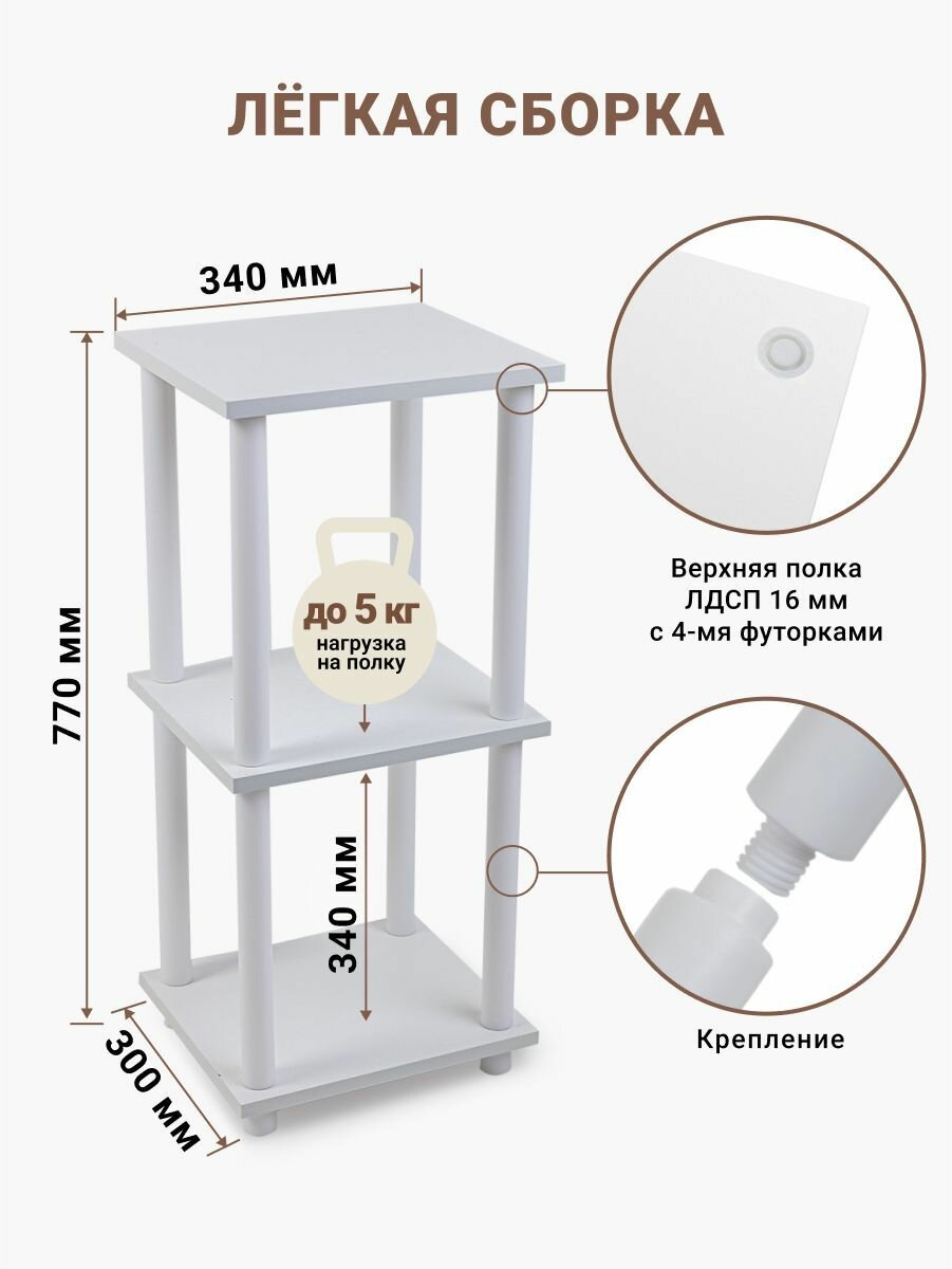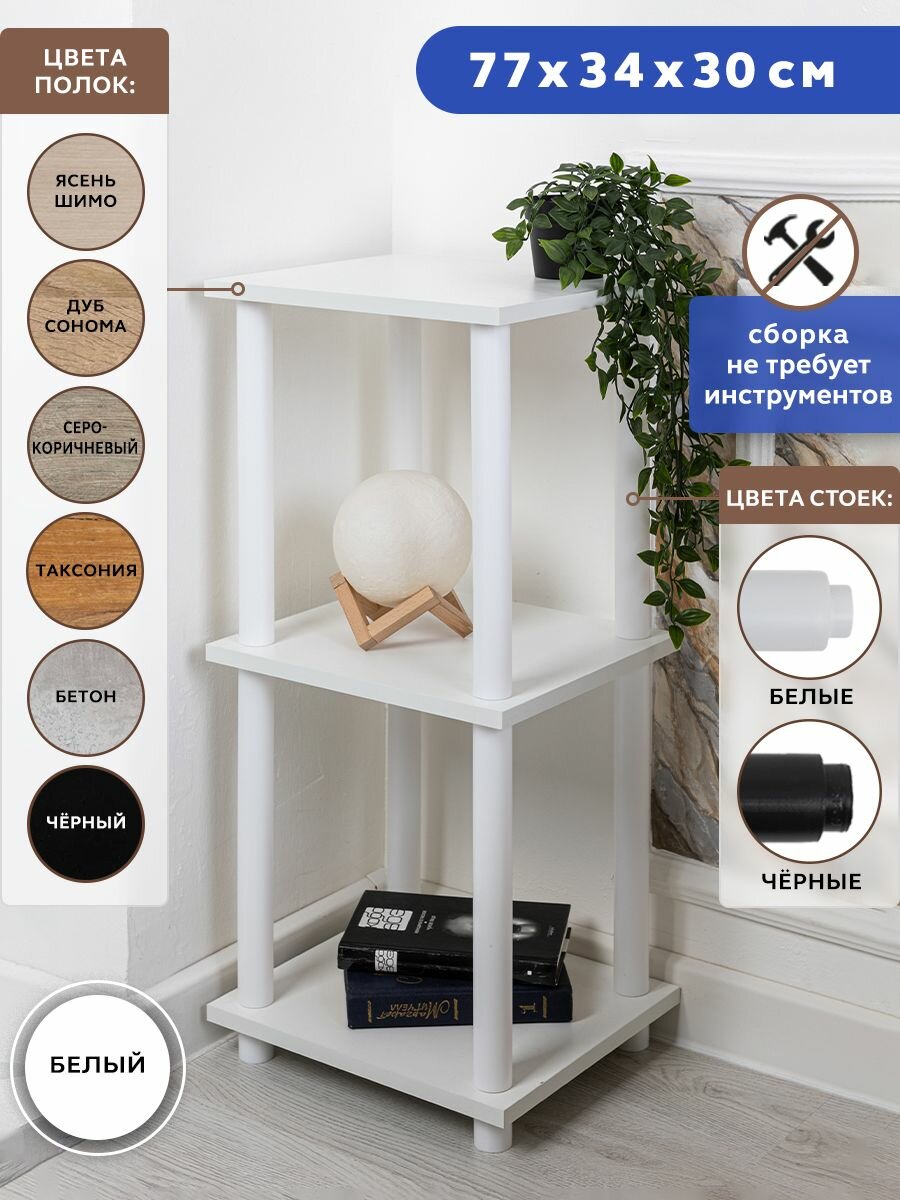 Этажерка деревянная GASTRORAG - это многофункциональная мебель для квартиры, дома, дачи, офиса. Дизайнеры разработали универсальную, доступную всем 3-ярусную систему хранения вещей для любых помещений: для прихожей, кухни, гостиной, детской, кабинета, балкона. Ее можно использовать как стеллаж для кухонной техники, посуды, овощей и фруктов, напольную этажерку для книг, детских игрушек и предметов интерьера, подставку из дерева для цветов и рассады, офисную мебель для папок, канцелярии и оргтехники. Открытый стеллаж укомплектован 3 полками из ЛДСП, которые соединяются между собой стойками из пластиковой трубы черного цвета. Размеры полки 34х30 см, высота мебели в собранном виде 77 см. Расстояние между полками этажерки 34 см. Стеллаж ЛДСП имеет небольшой вес, быстро собирается без инструментов и легко переносится с места на место. Нагрузка на полку до 5 кг. Благодаря современному минималистичному дизайну этажерка лофт впишется в любой интерьер. Цвет ЛДСП по выбору: белый, таксония.