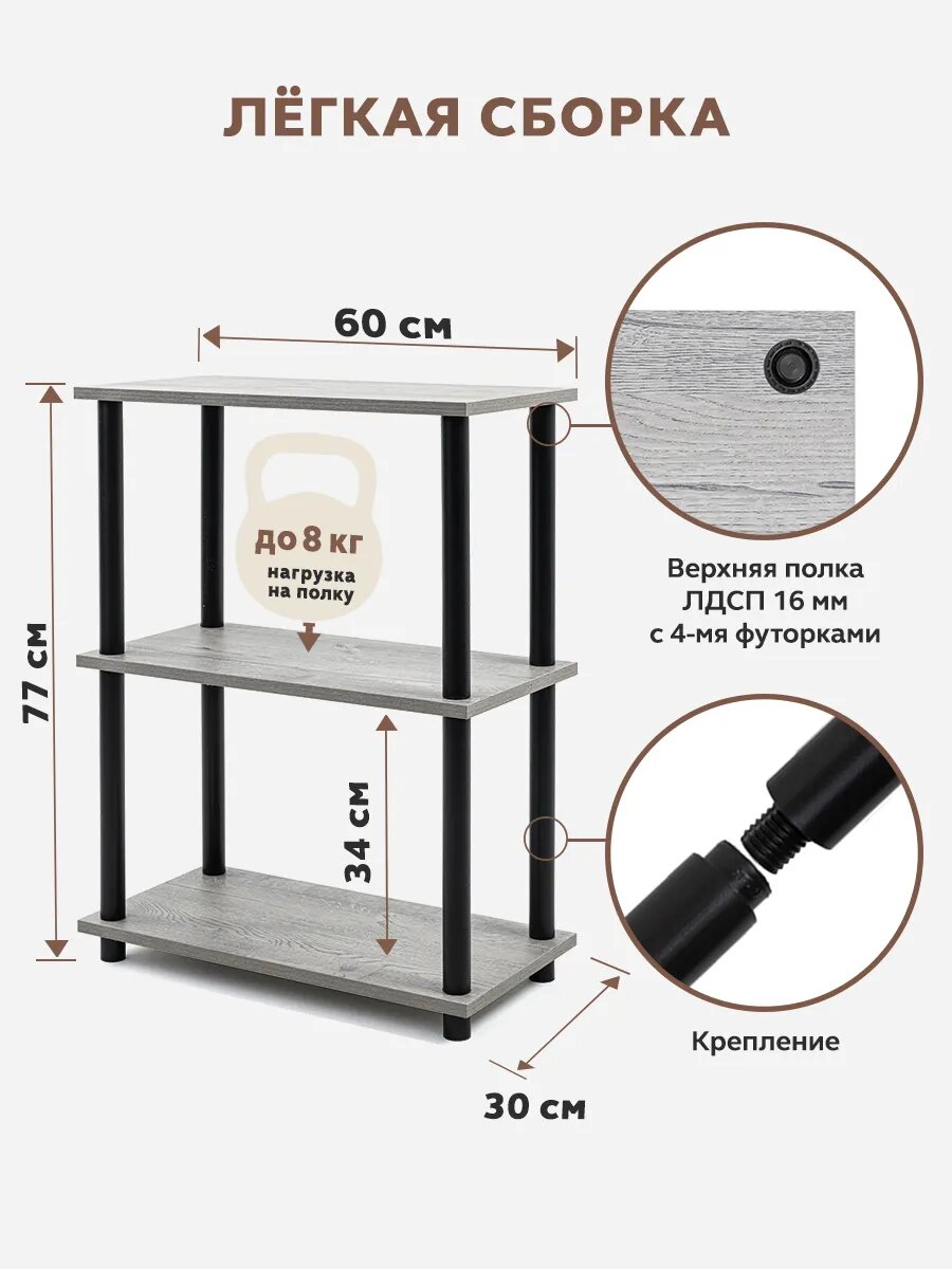 Этажерка деревянная GASTRORAG 0770/3, 3 полки, размеры 60 х 30 х 77 см: сравнение цен, характеристики, фото, актуальное наличие и цены.