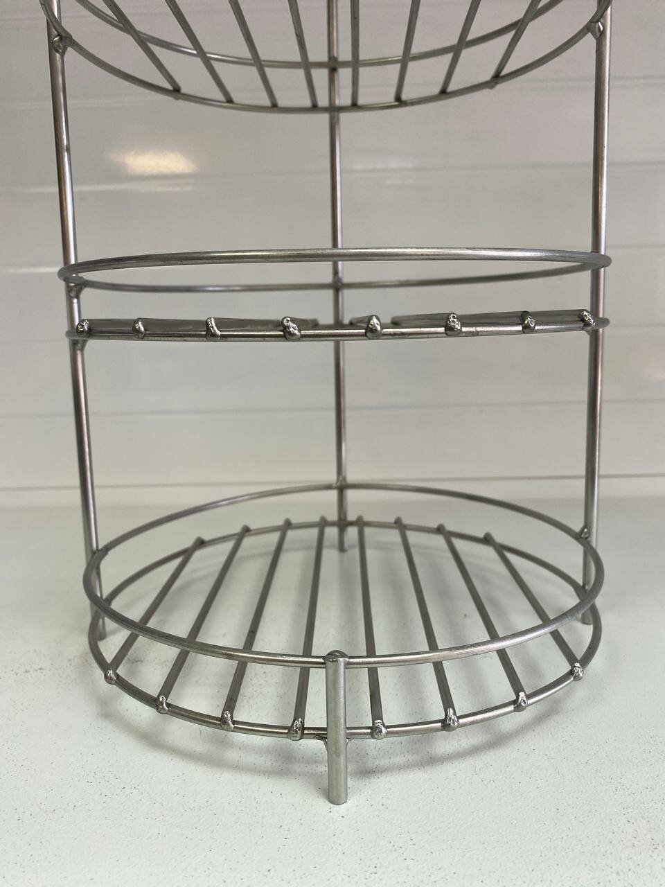 Этажерка усиленна и имеет повышенный запас прочности. Обратите внимание на то, что эта этажерка оборудована дополнительным кольцом, что не дает продуктам вылезать за пределы этажерки.