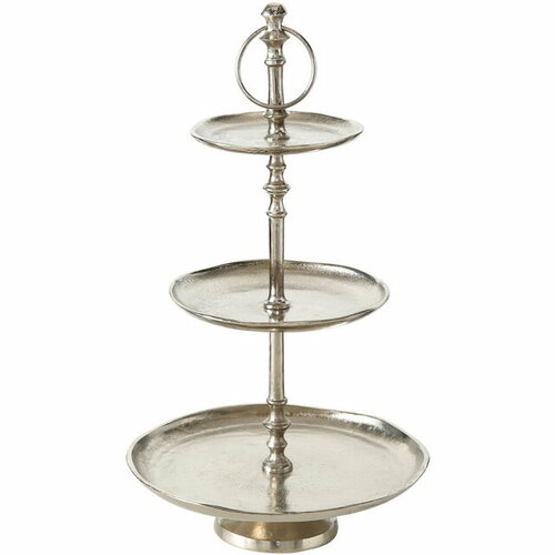 Трехъярусная этажерка для стола Flaire идеально подойдет для подачи фруктов и прочих лакомств. Элегантное исполнение из металла, вместительные ярусы на резной ножке и удобная ручка-кольцо - прекрасное сочетание практичности, удобства и стиля!