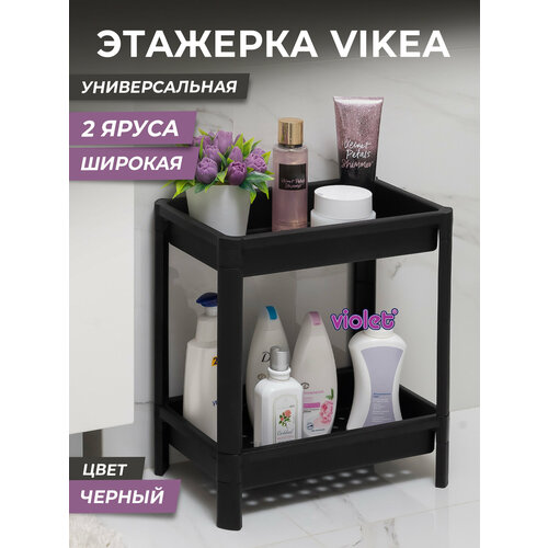 Купить Этажерка для хранения вещей 2х ярусная VIKEA широкая, цвет черный с доставкой по всей России. Этажерка для хранения вещей 2х ярусная VIKEA широкая, цвет черный: сравнение цен, характеристики, фото, актуальное наличие и цены.