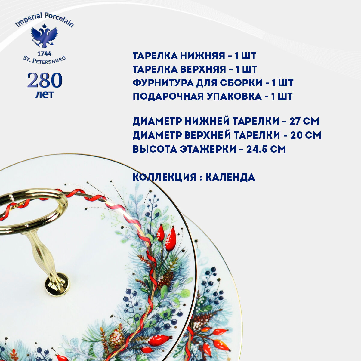 Этажерка для кухни 2-х ярусная «Календа». Высота 24,5 см. Фарфор. Подарочная упаковка. Императорский фарфоровый завод ИФЗ ЛФЗ: сравнение цен, характеристики, фото, актуальное наличие и цены.