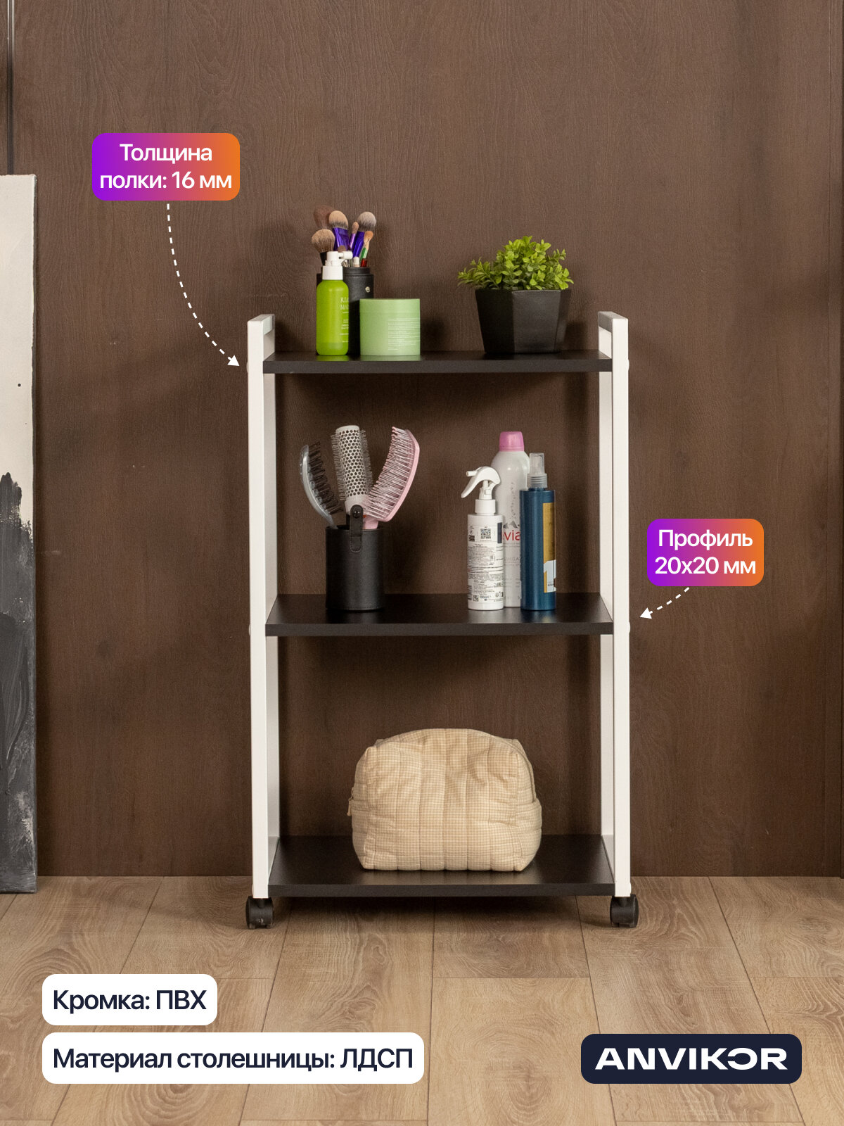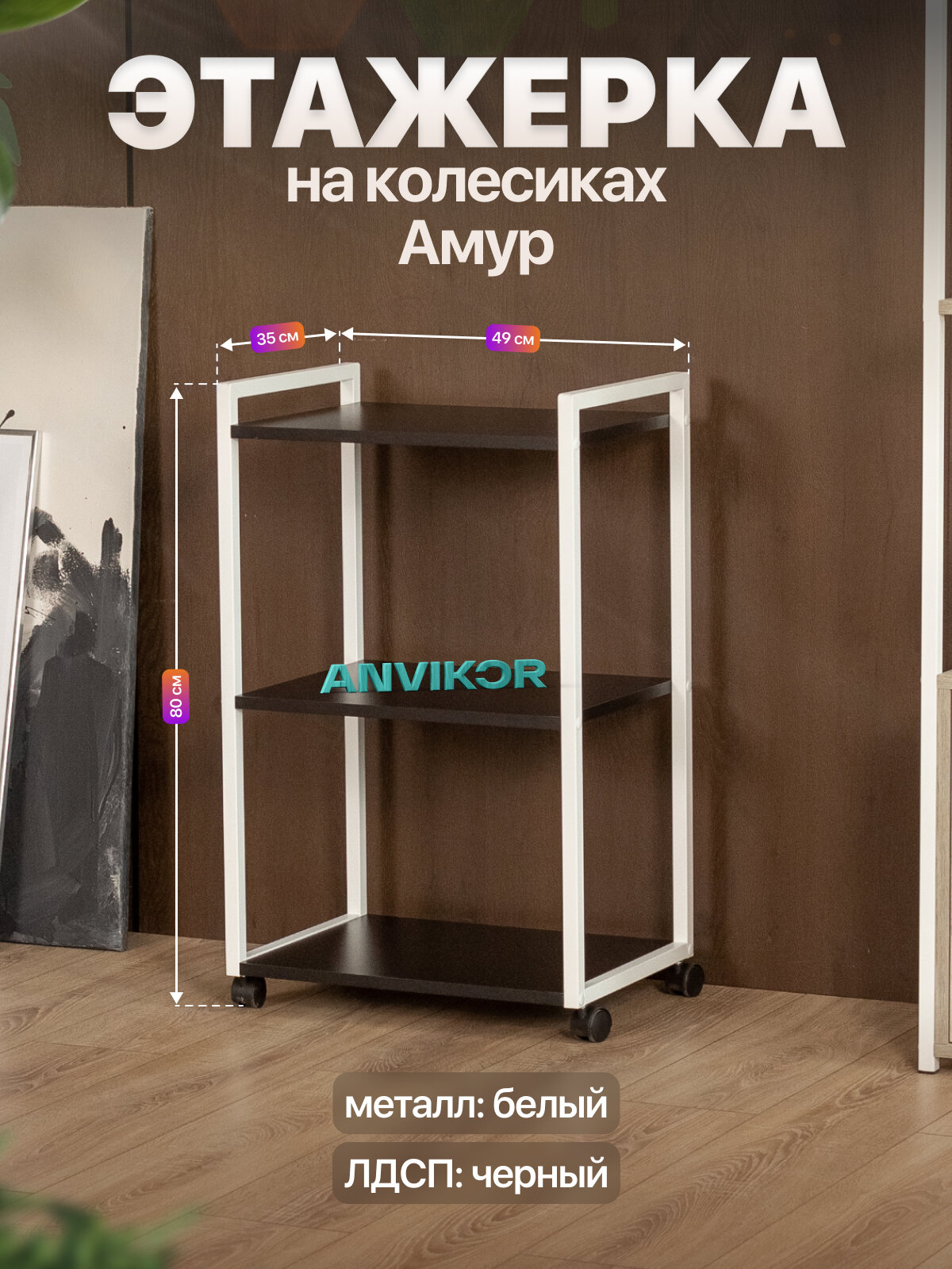 Этажерка для кухни и ванной на колесиках металлическая лофт Амур белый/черный: сравнение цен, характеристики, фото, актуальное наличие и цены.