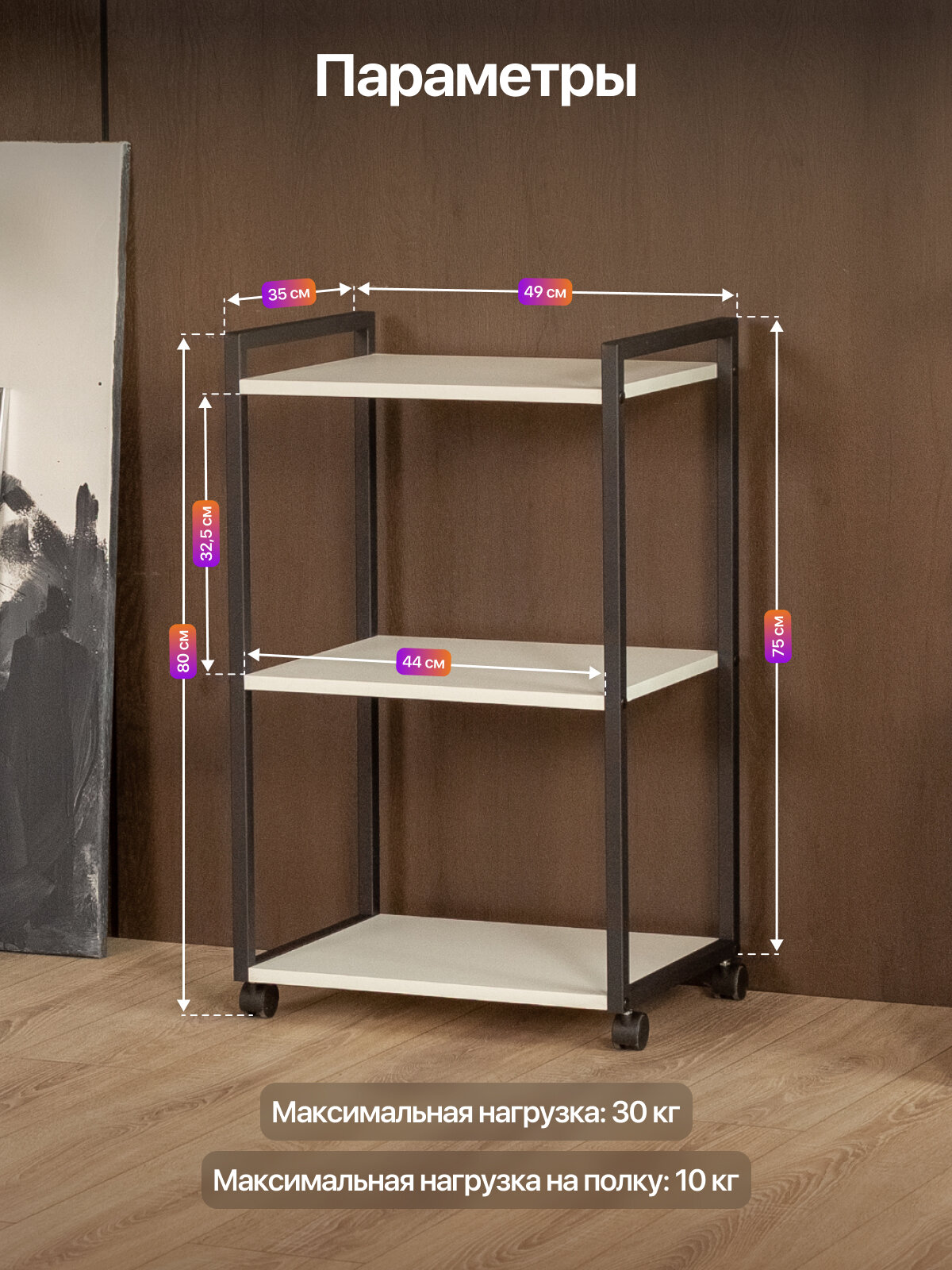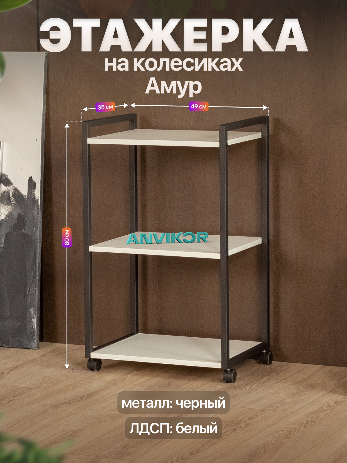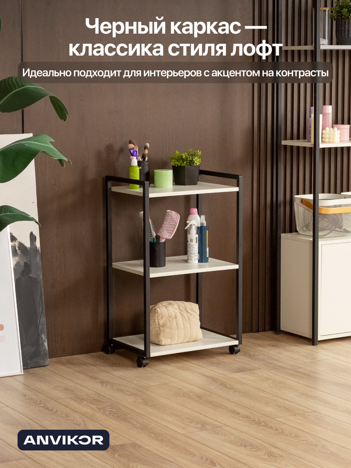 Этажерка для кухни и ванной на колесиках металлическая лофт Амур черный/белый: сравнение цен, характеристики, фото, актуальное наличие и цены.