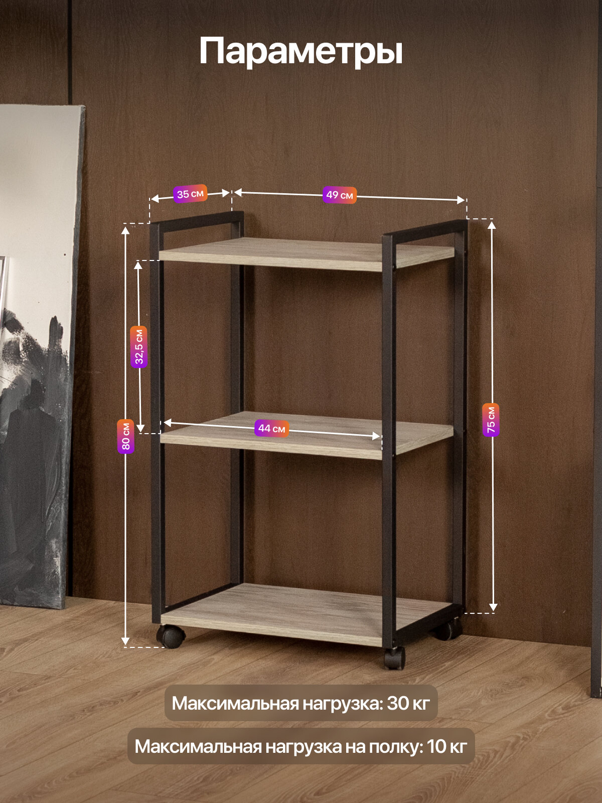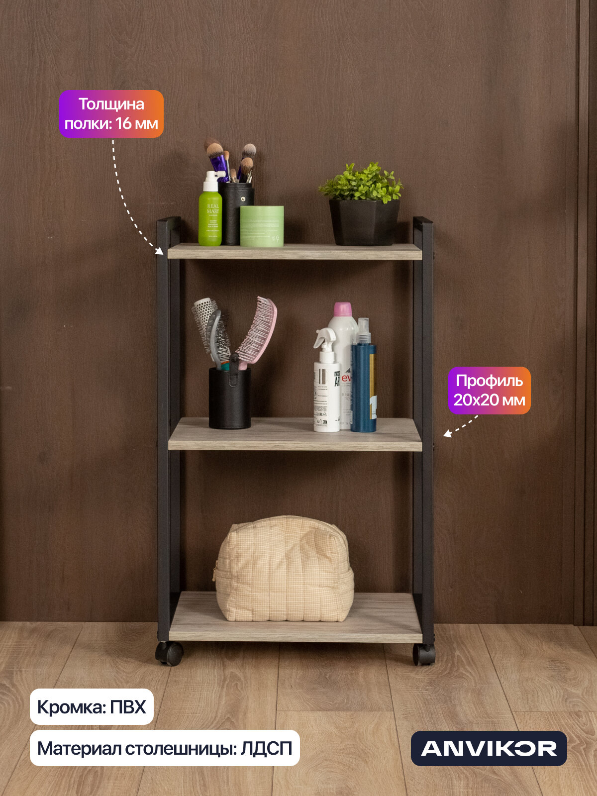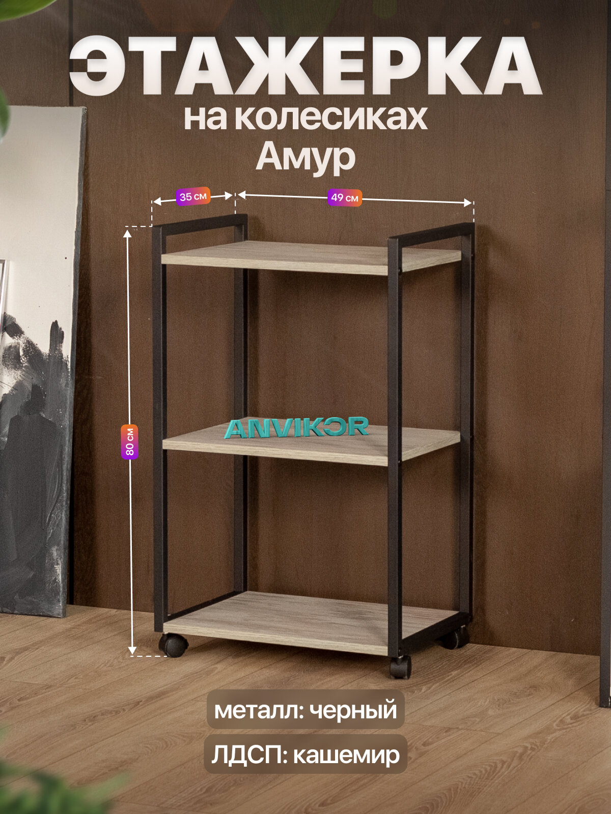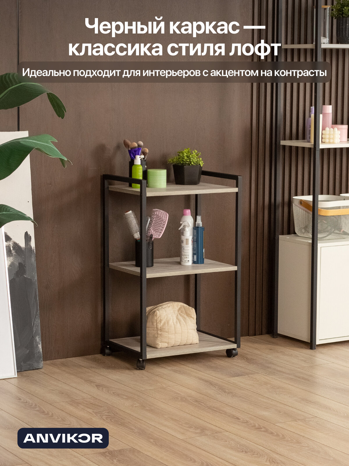 Этажерка для кухни и ванной на колесиках металлическая лофт Амур черный/серый: сравнение цен, характеристики, фото, актуальное наличие и цены.