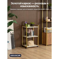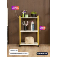 Купить Этажерка для кухни и ванной на колесиках металлическая лофт Амур золотой/белый с доставкой по всей России.