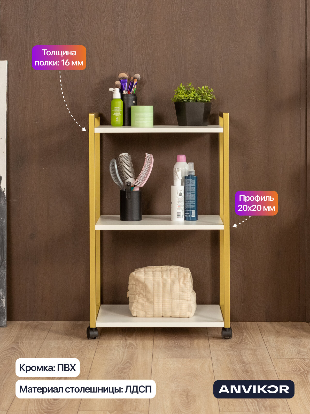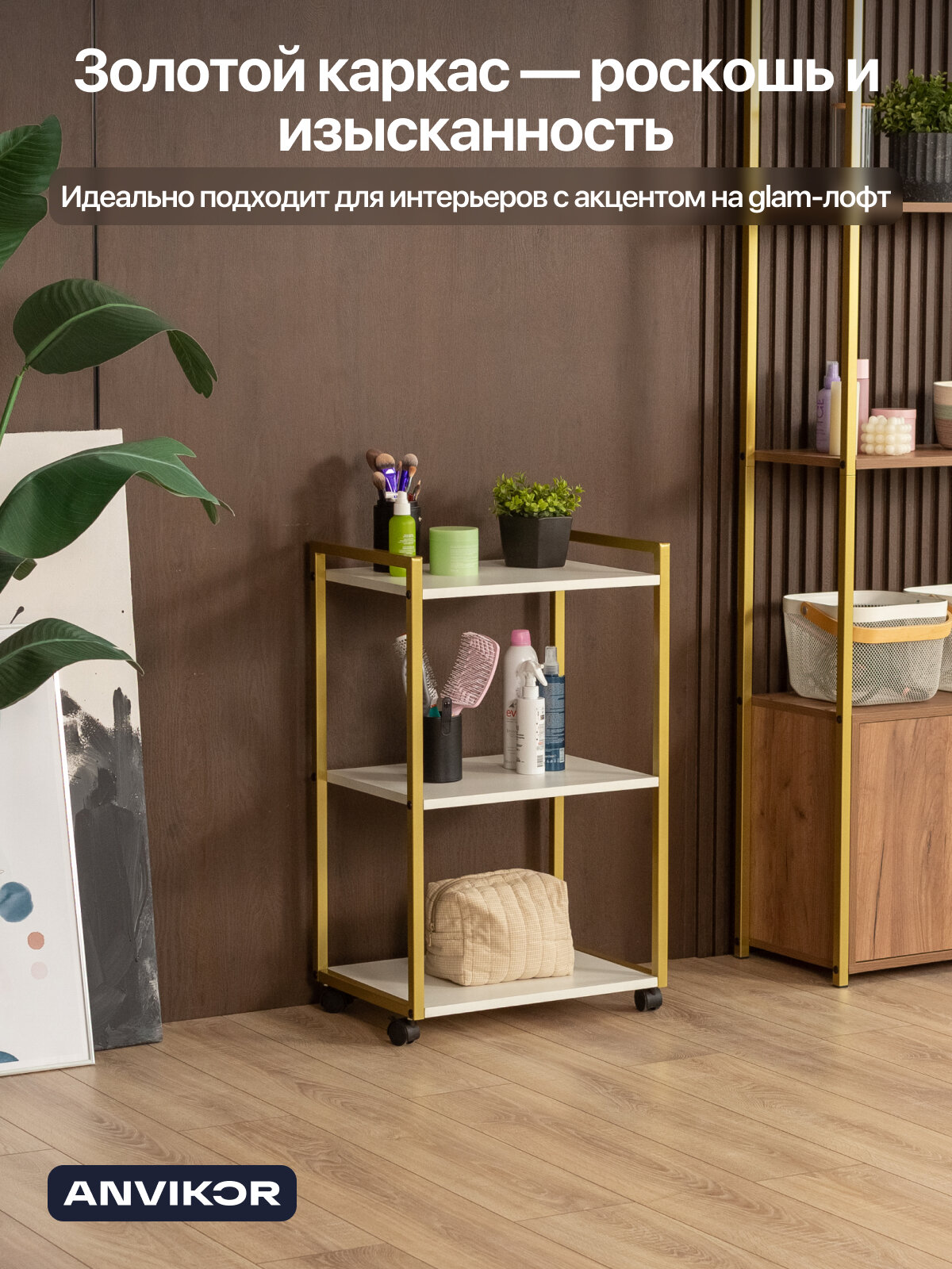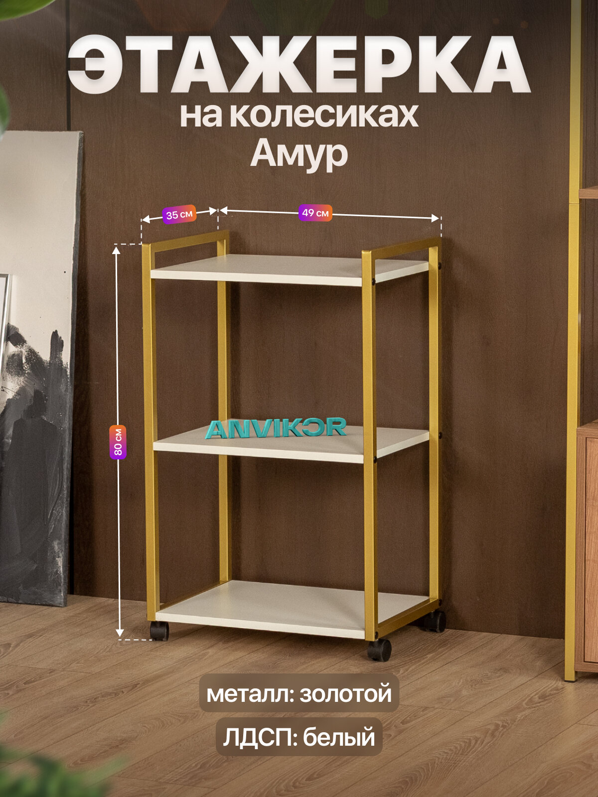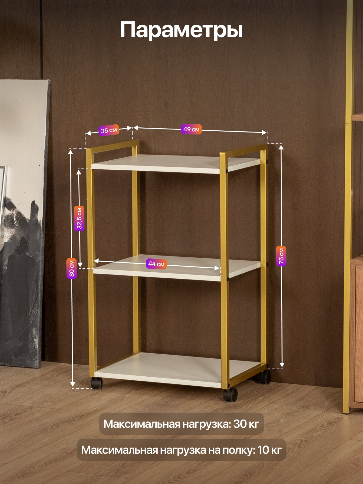 Этажерка для кухни и ванной на колесиках металлическая лофт Амур золотой/белый: сравнение цен, характеристики, фото, актуальное наличие и цены.