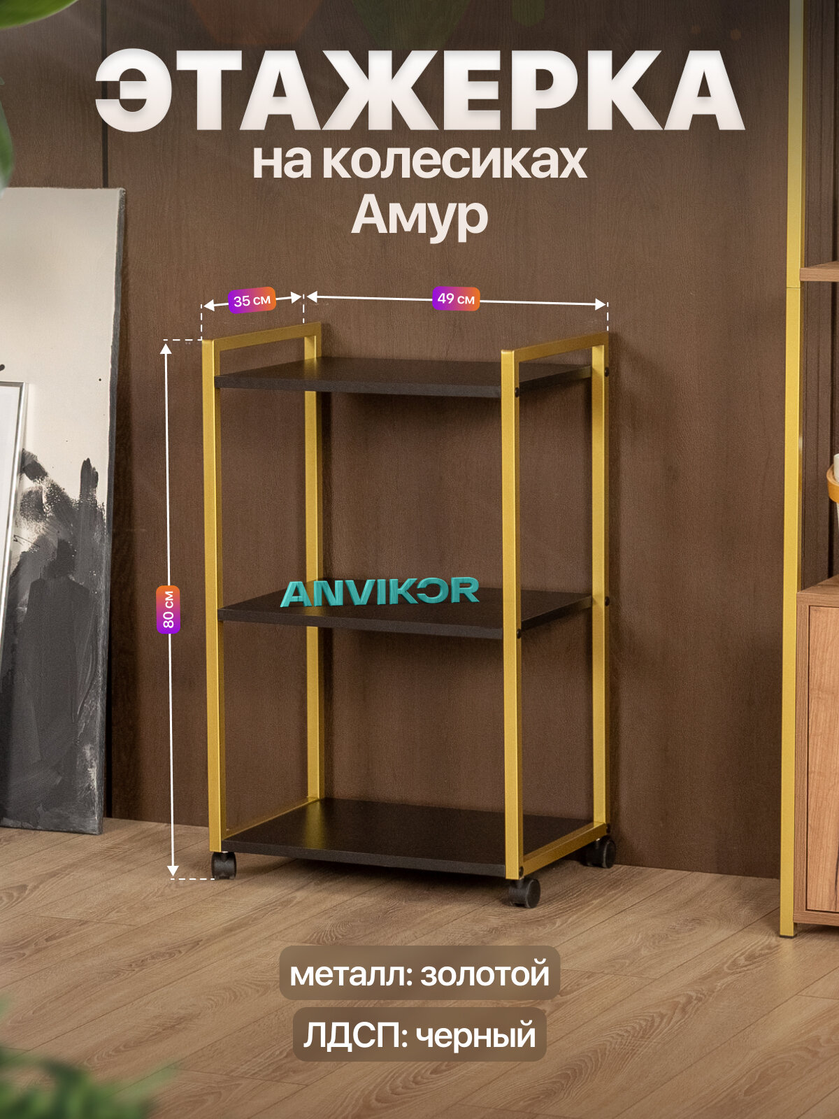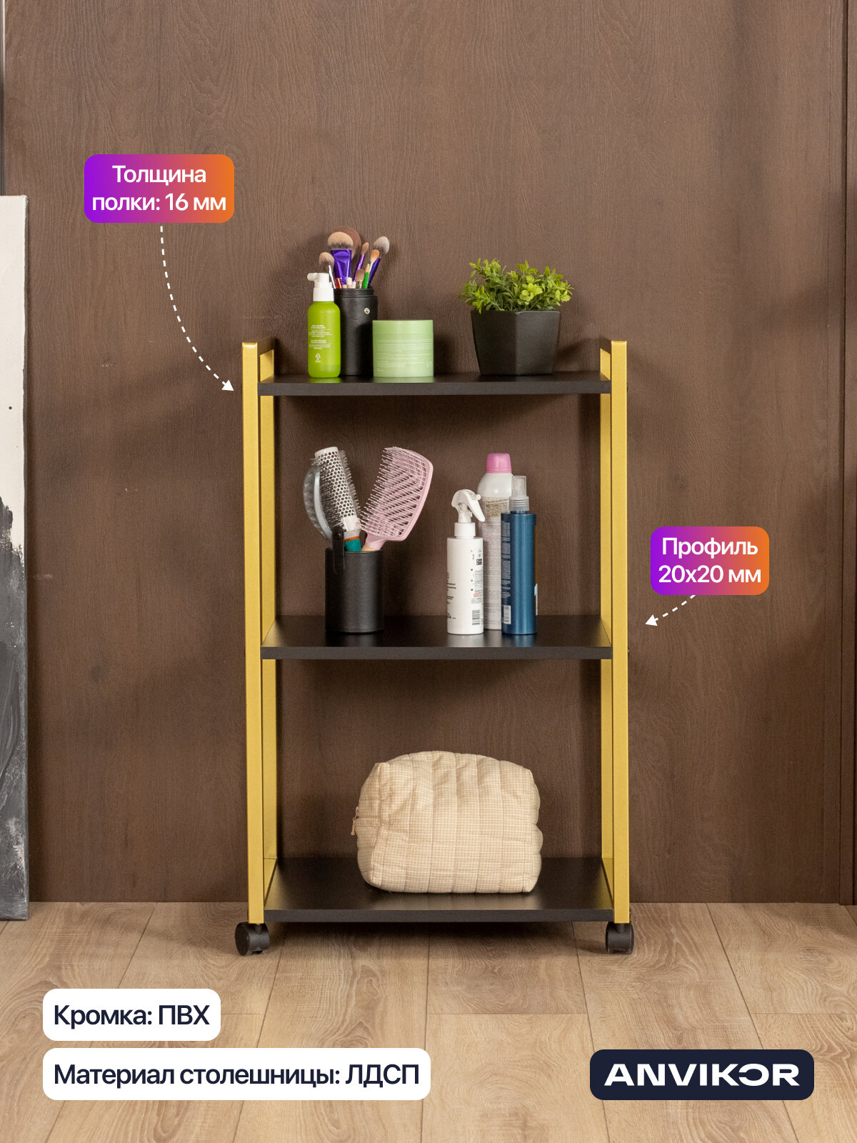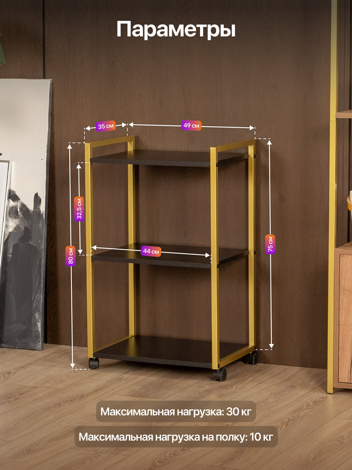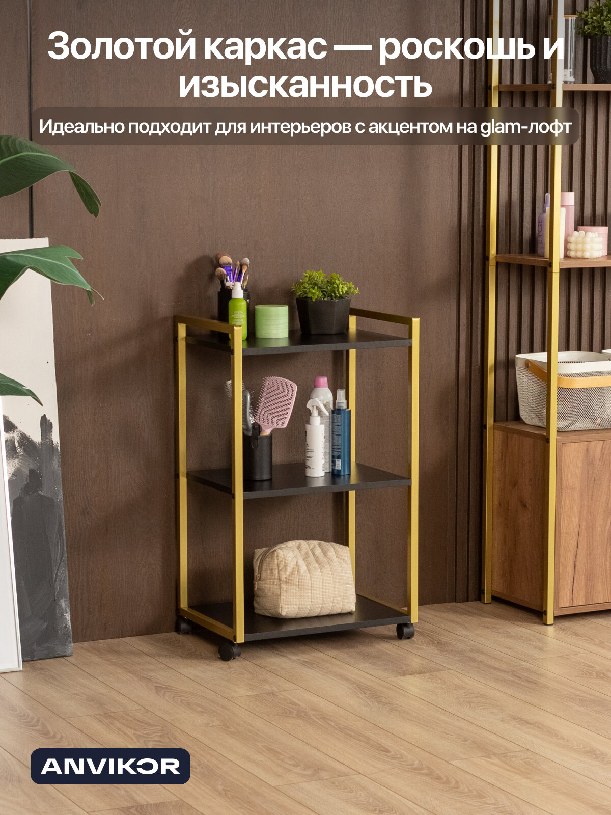 Этажерка для кухни и ванной на колесиках металлическая лофт Амур золотой/черный: сравнение цен, характеристики, фото, актуальное наличие и цены.