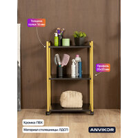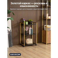 Купить Этажерка для кухни и ванной на колесиках металлическая лофт Амур золотой/черный с доставкой по всей России.