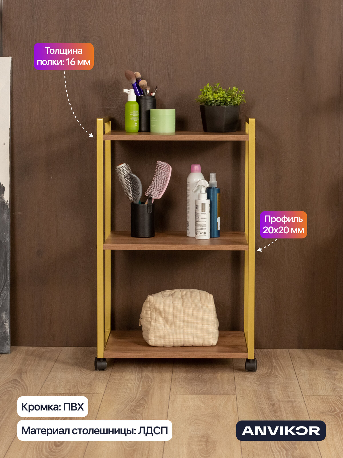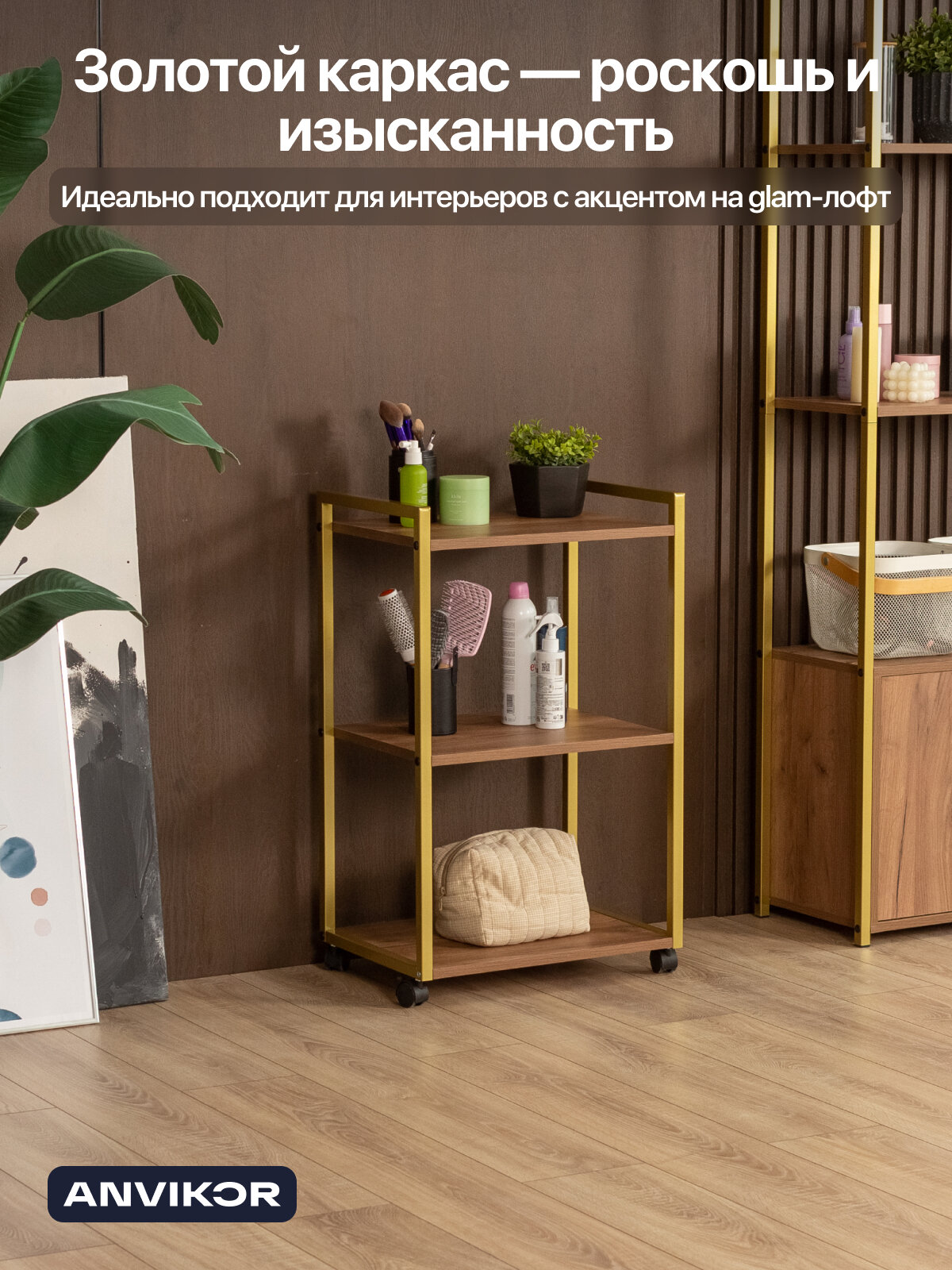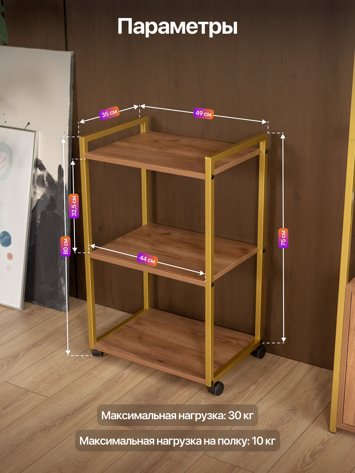Этажерка для кухни и ванной на колесиках металлическая лофт Амур золотой/коричневый: сравнение цен, характеристики, фото, актуальное наличие и цены.