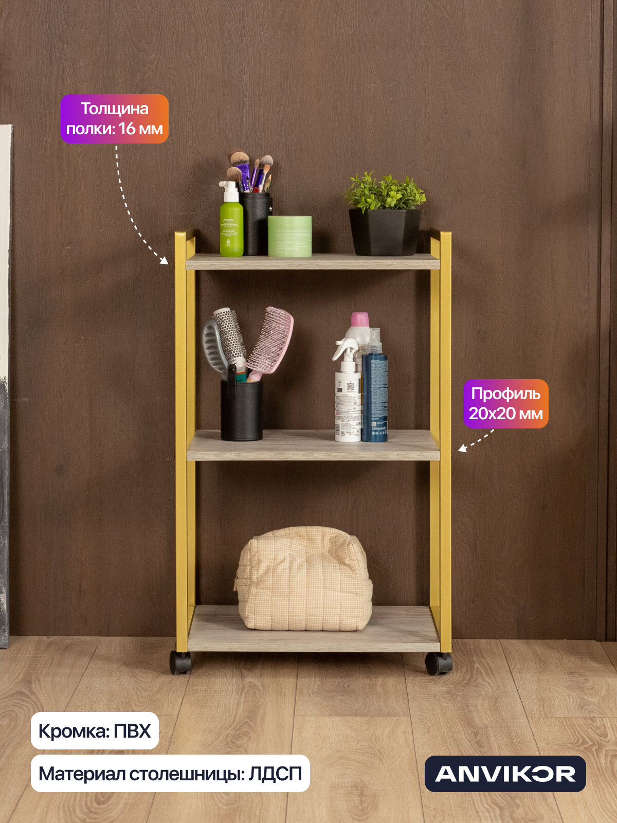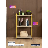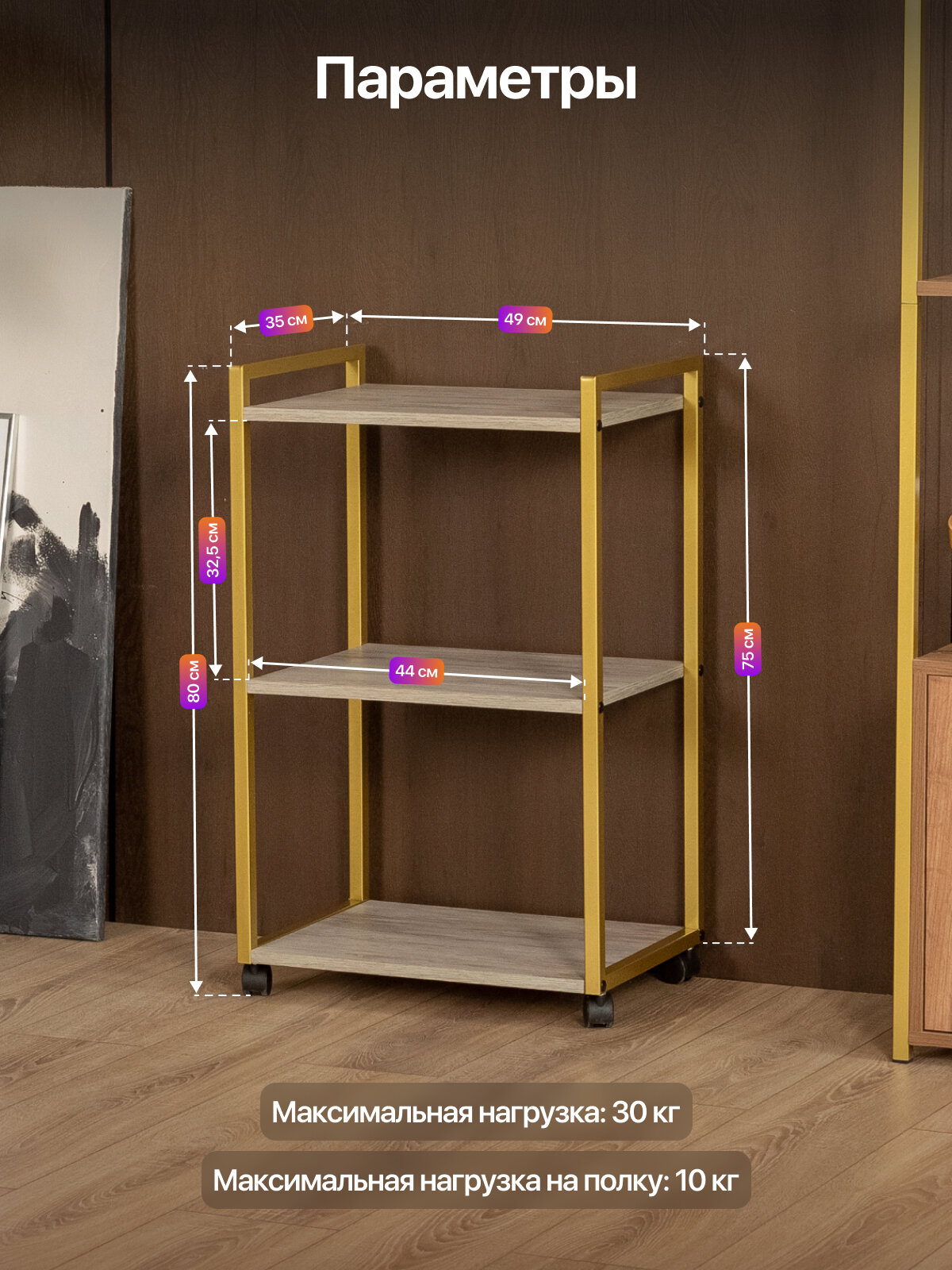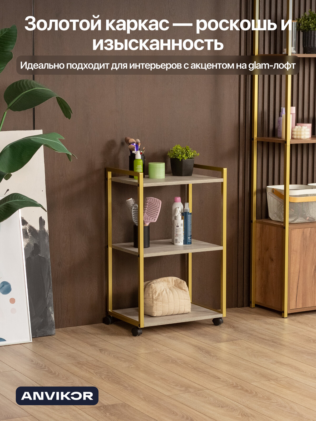 Этажерка для кухни и ванной на колесиках металлическая лофт Амур золотой/серый: сравнение цен, характеристики, фото, актуальное наличие и цены.