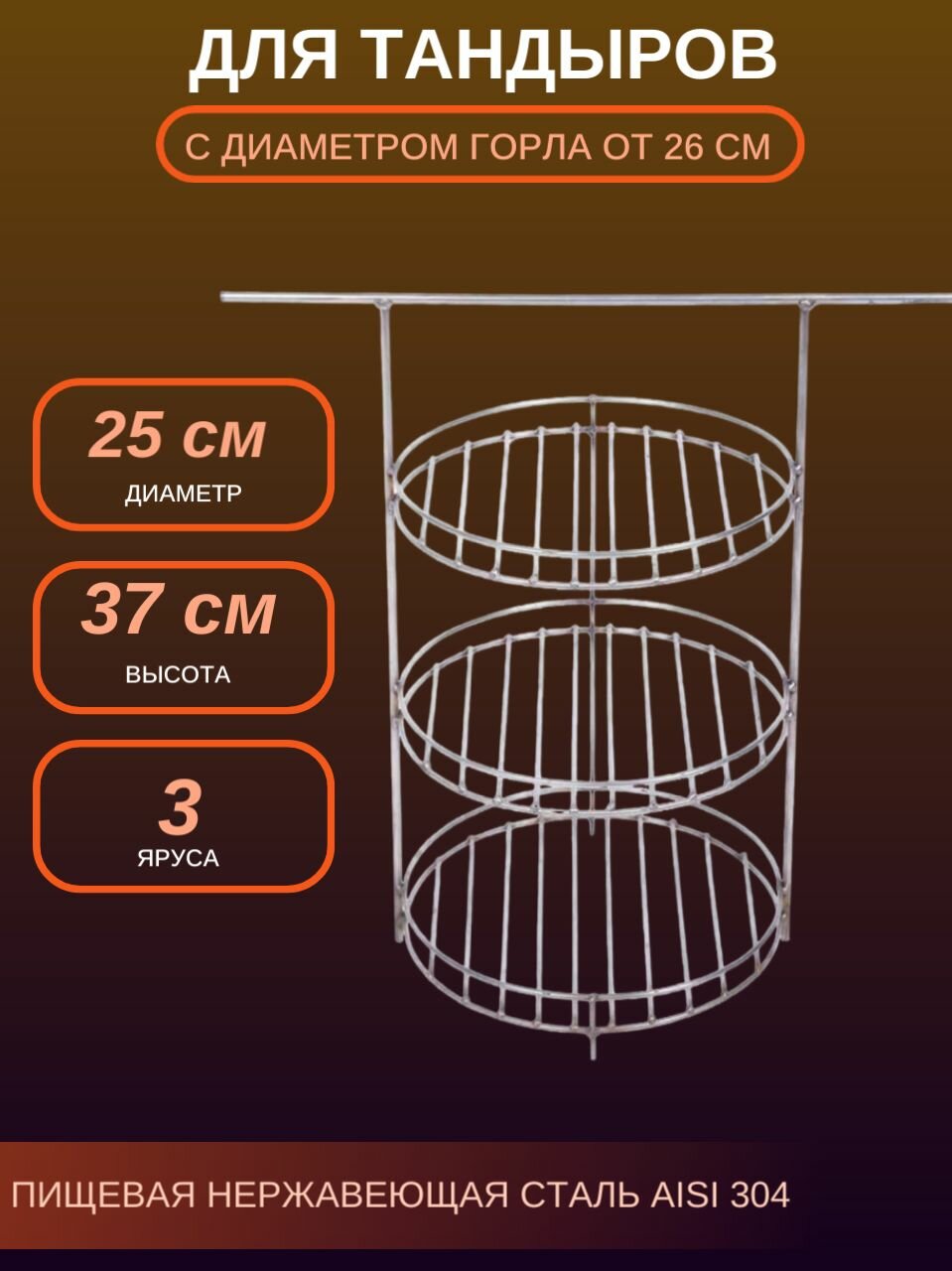 Подходит для тандыров с диаметром горла от 25,5 см. высотой без крышки от 39 см.