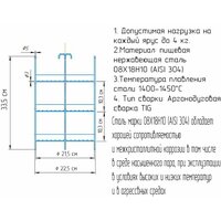 - Материал: нержавеющая сталь марки AISI 304 (08Х18Н10)