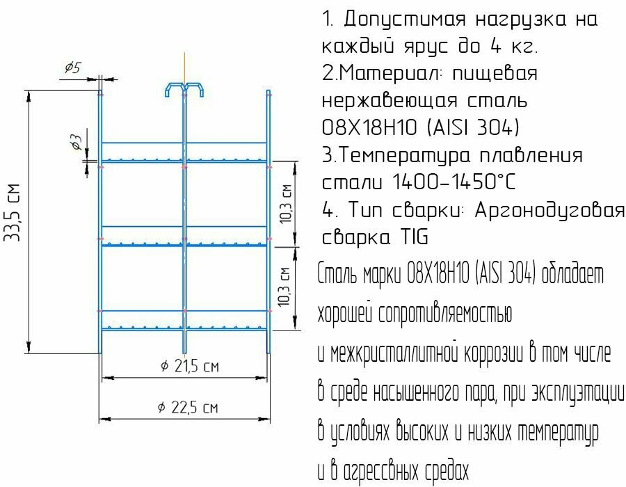 - Допустимая нагрузка на каждый ярус до 4 кг.