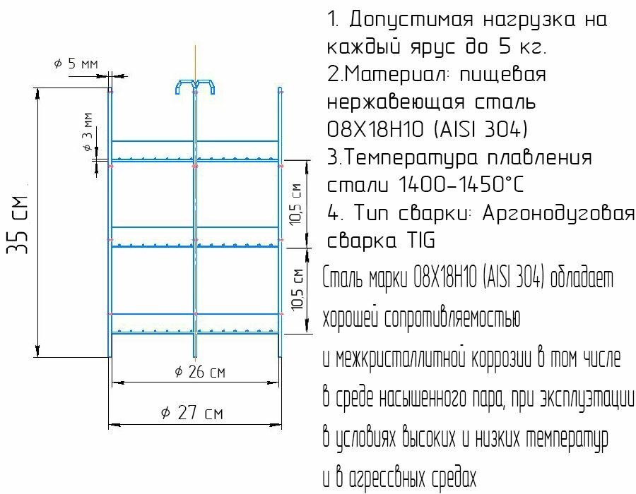 - Допустимая нагрузка на каждый ярус до 5 кг.