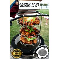 Тот кто пользуется тандыром подтвердят, что дополнительное кольцо является главным элементом в этажерке. Так как после загрузки аксессуара продуктами (шампиньоны, картошка, помидоры, огурцы и др.) пока несёте этажерку до тандыра или в то время как извлекайте её из печи. продукты перекатываются и если нет дополнительного борта, падают на землю.