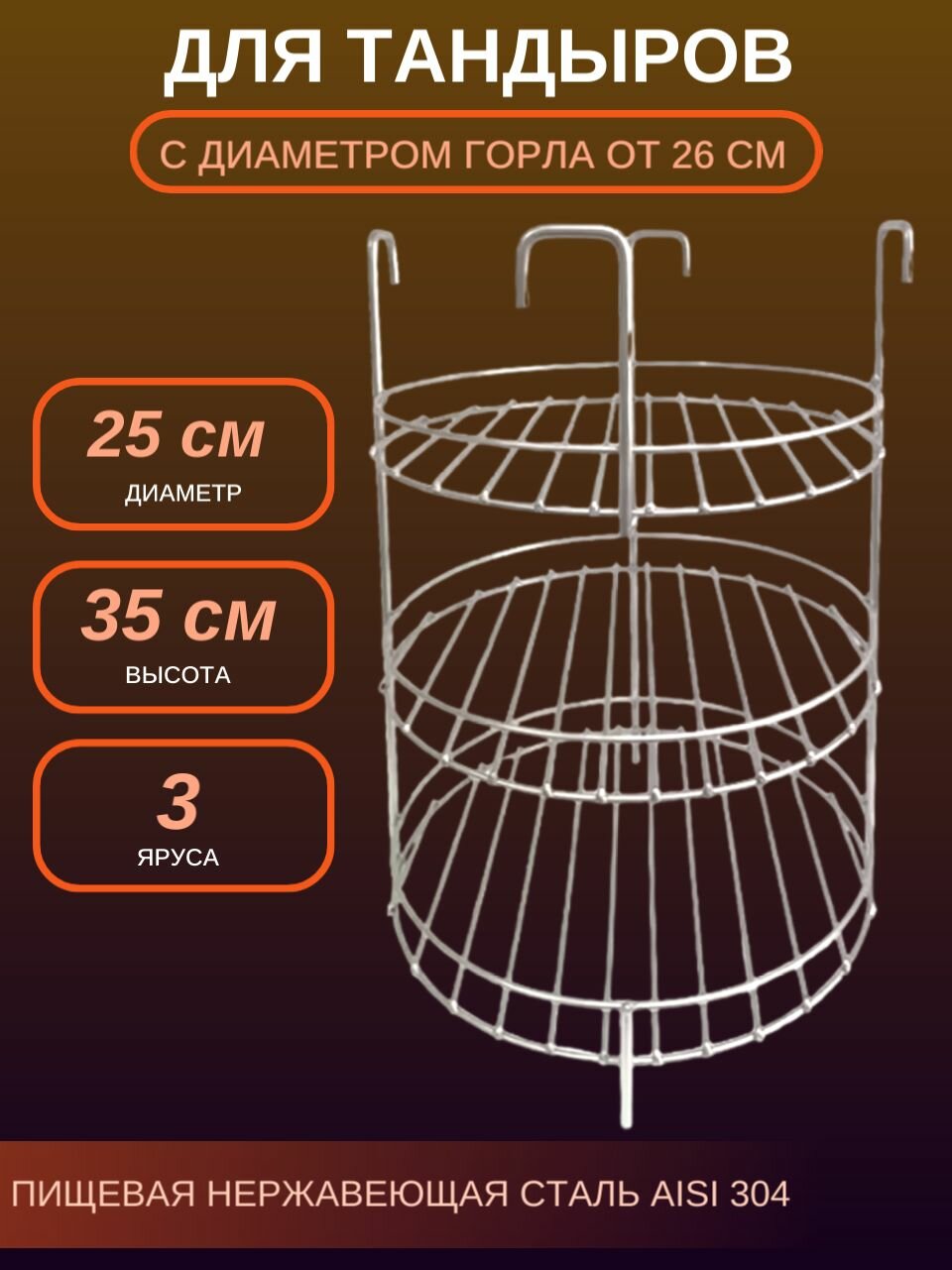 Этажерка для тандыра станет незаменимым помощником в приготовлении большинства вкуснейших блюд. На тандырной сетке можно приготовить максимальное количество блюд, например куриных крылышек с овощами или же заложить большой кусок мяса, вашим фантазиям нет предела!) Мясные продукты можно приготовить для большой компании всего за один этап.