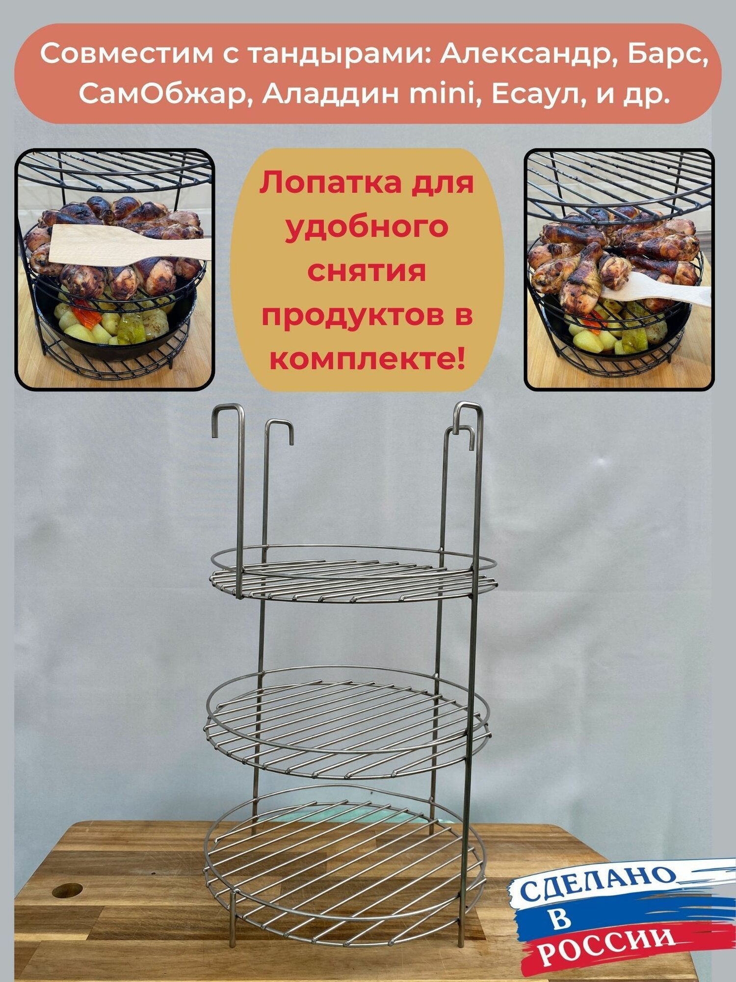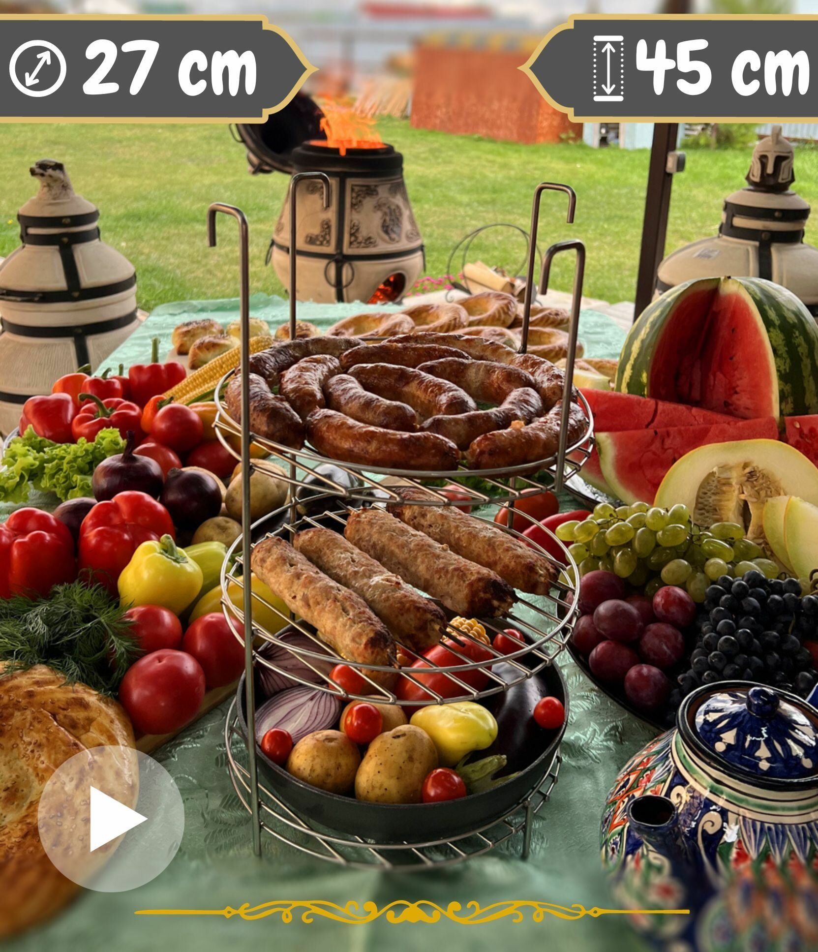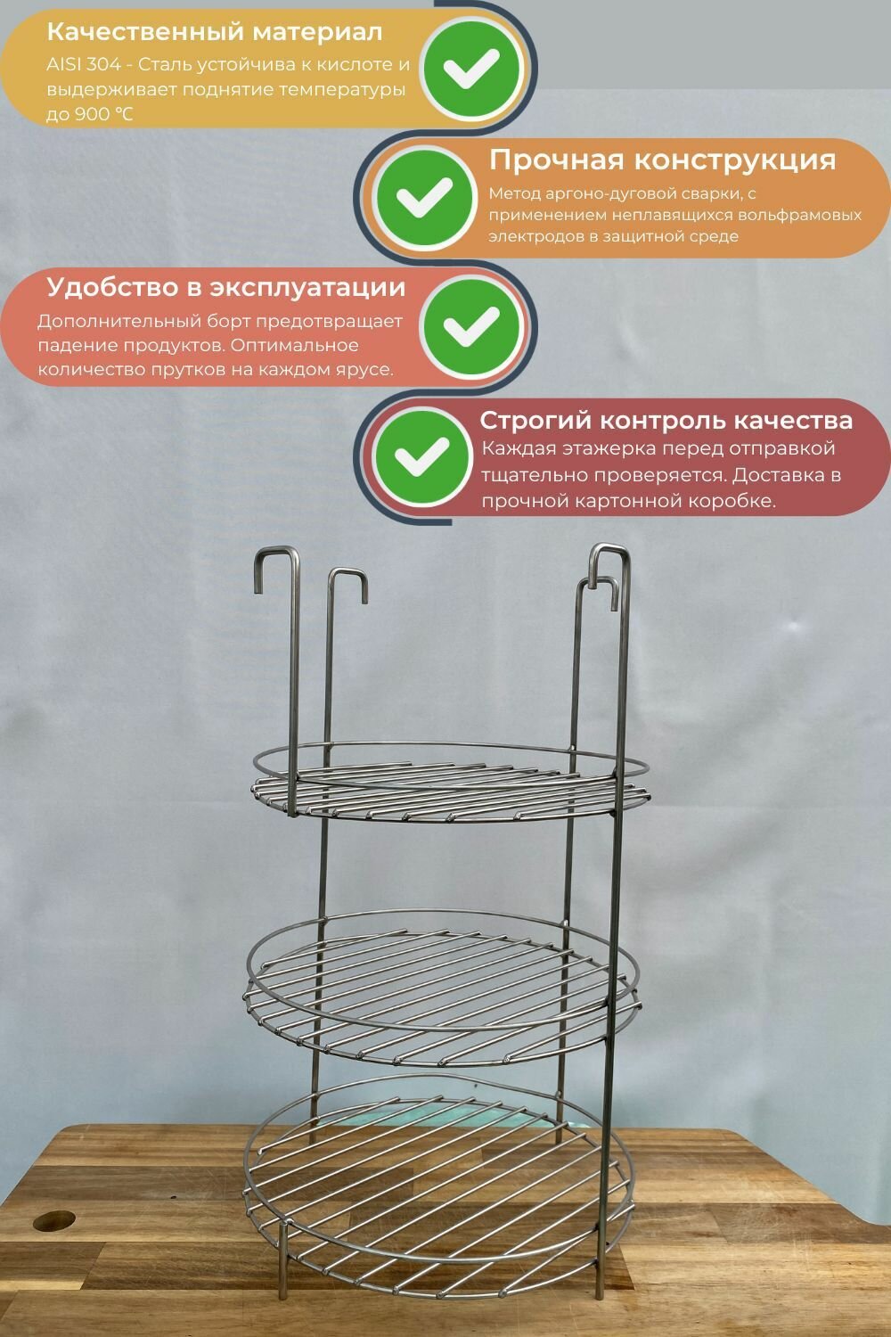 Этажерка для тандыра 3-х ярусная диаметр 27 см, Высота 45 см, с бортом.