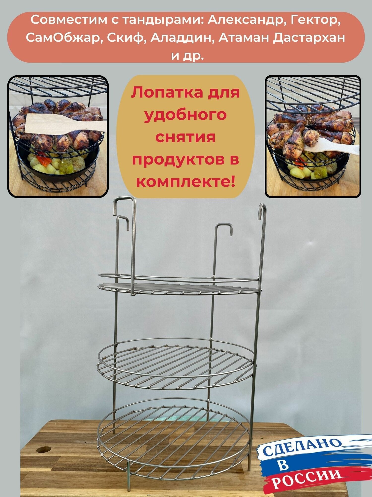 Этажерка для тандыра станет незаменимым помощником в приготовлении большинства вкуснейших блюд. На тандырной сетке можно приготовить максимальное количество блюд, например куриных крылышек с овощами или же заложить большой кусок мяса, вашим фантазиям нет предела!) Мясные продукты можно приготовить для большой компании всего за один этап.