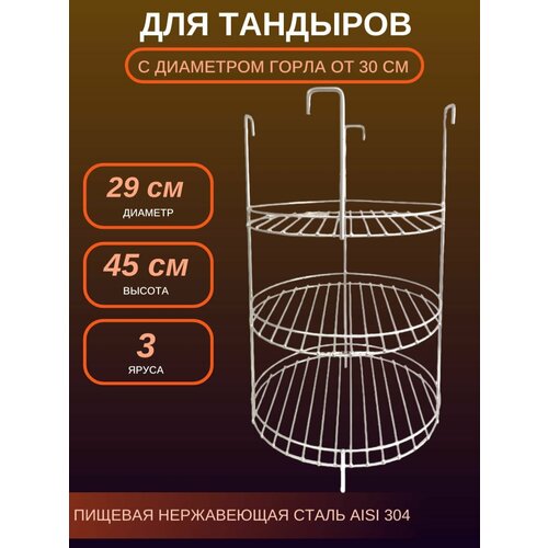 Этажерка для тандыра 3-х ярусная диаметр 29 см с доп. кольцом Высота 45 см