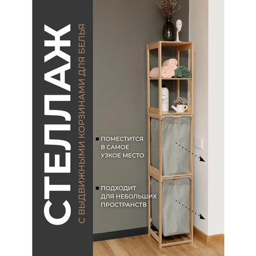 Этажерка для ванной напольная, стеллаж деревянный с корзиной для белья, АзбукаДекор: сравнение цен, характеристики, фото, актуальное наличие и цены.