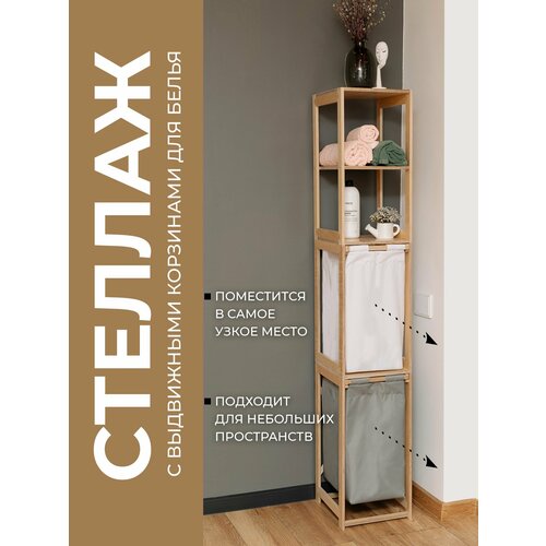 Этажерка для ванной напольная, стеллаж деревянный с корзиной для белья, АзбукаДекор: сравнение цен, характеристики, фото, актуальное наличие и цены.