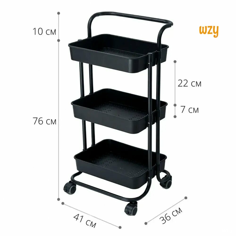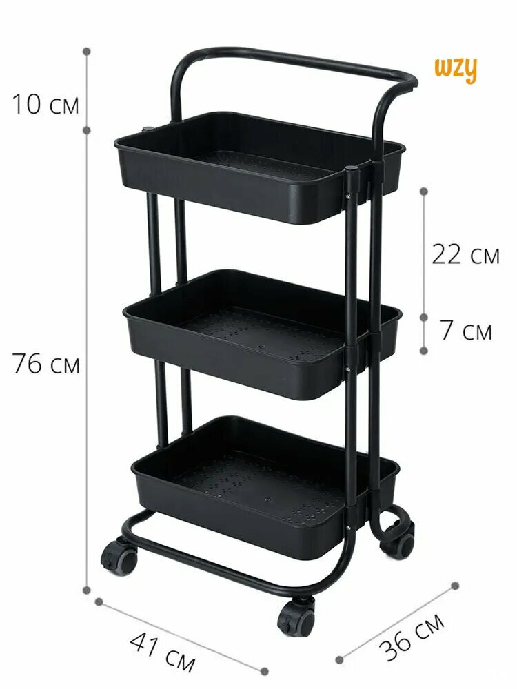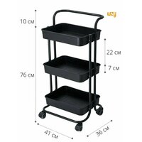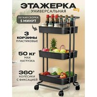 Купить Стеллаж металлический Takara YMH-10 / этажерка на колесиках / 86*41*36 см, черный, 3 пластиковые корзины с доставкой по всей России.