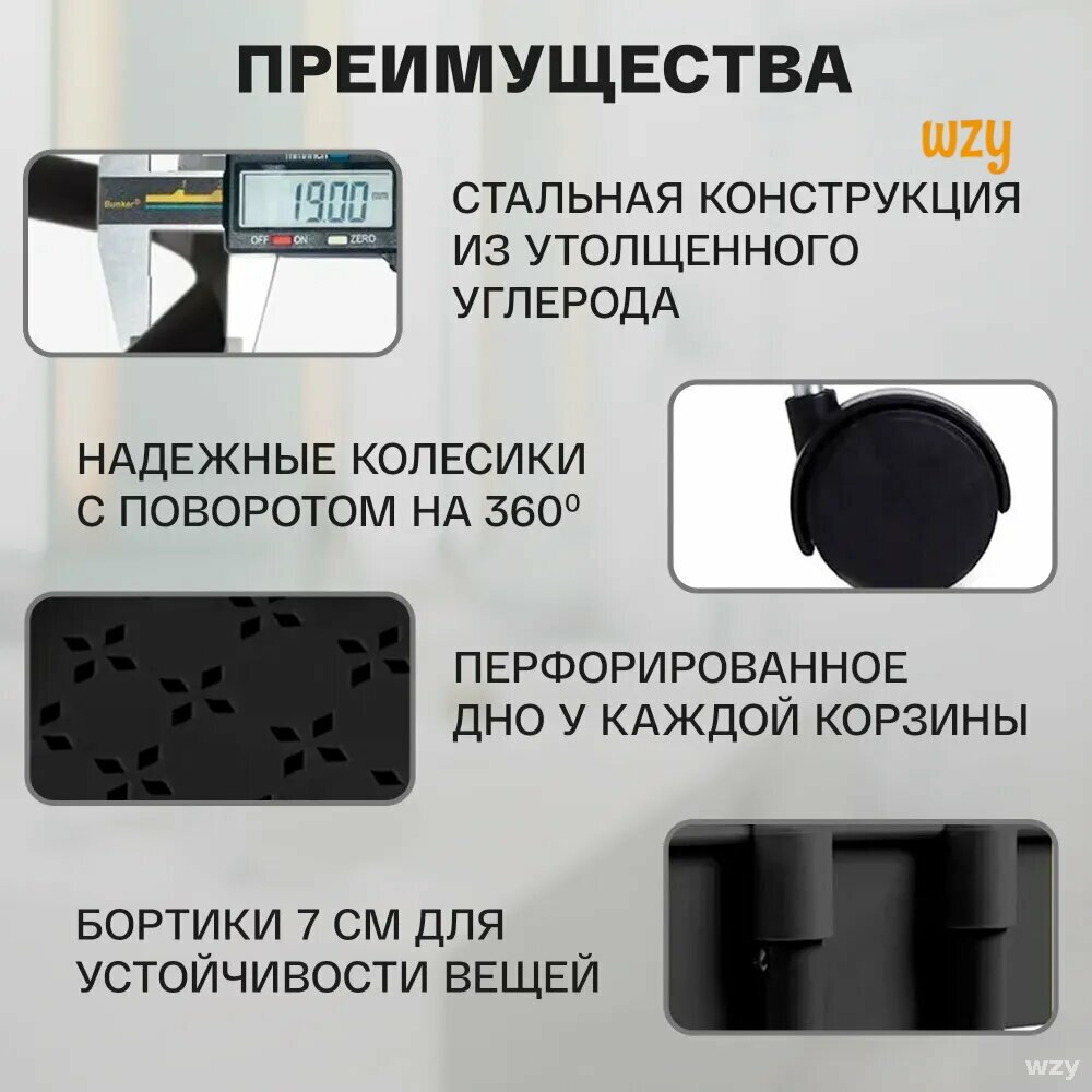 Стеллаж металлический Takara YMH-10 / этажерка на колесиках / 86*41*36 см, черный, 3 пластиковые корзины: сравнение цен, характеристики, фото, актуальное наличие и цены.