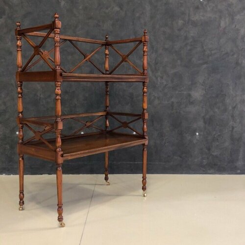 Массив красного дерева, из которого изготовлена этажерка, является символом прочности и долговечности. Этот материал известен своей устойчивостью к износу и способностью выдерживать большие нагрузки.