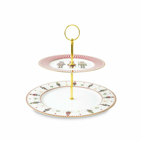 Ваза двухъярусная Щелкунчик от итальянского бренда Easy Life выполнена из качественного фарфора, украшена ярким красочным рисунком и декорирована золотом. Дизайн выполненный в красных тонах с изображением сказочного персонажа - придаст волшебство новогодней ночи. Фруктовница украсит сервировку праздничного стола и наполнит ваш дом атмосферой сказки и новогоднего чуда. Вазу нельзя мыть в посудомоечной машине и использовать в СВЧ-печи. Фруктовница упакована в красочную коробку и может стать великолепным подарком на новогодние праздники. Диаметр нижнего блюда (по верхнему краю): 27 см. Диаметр верхнего блюда (по верхнему краю): 19 см. Высота вазы: 23 см