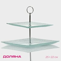Этажерка-фруктовница квадратная Доляна «Акцент», 2 яруса, 25×22 см, стекло