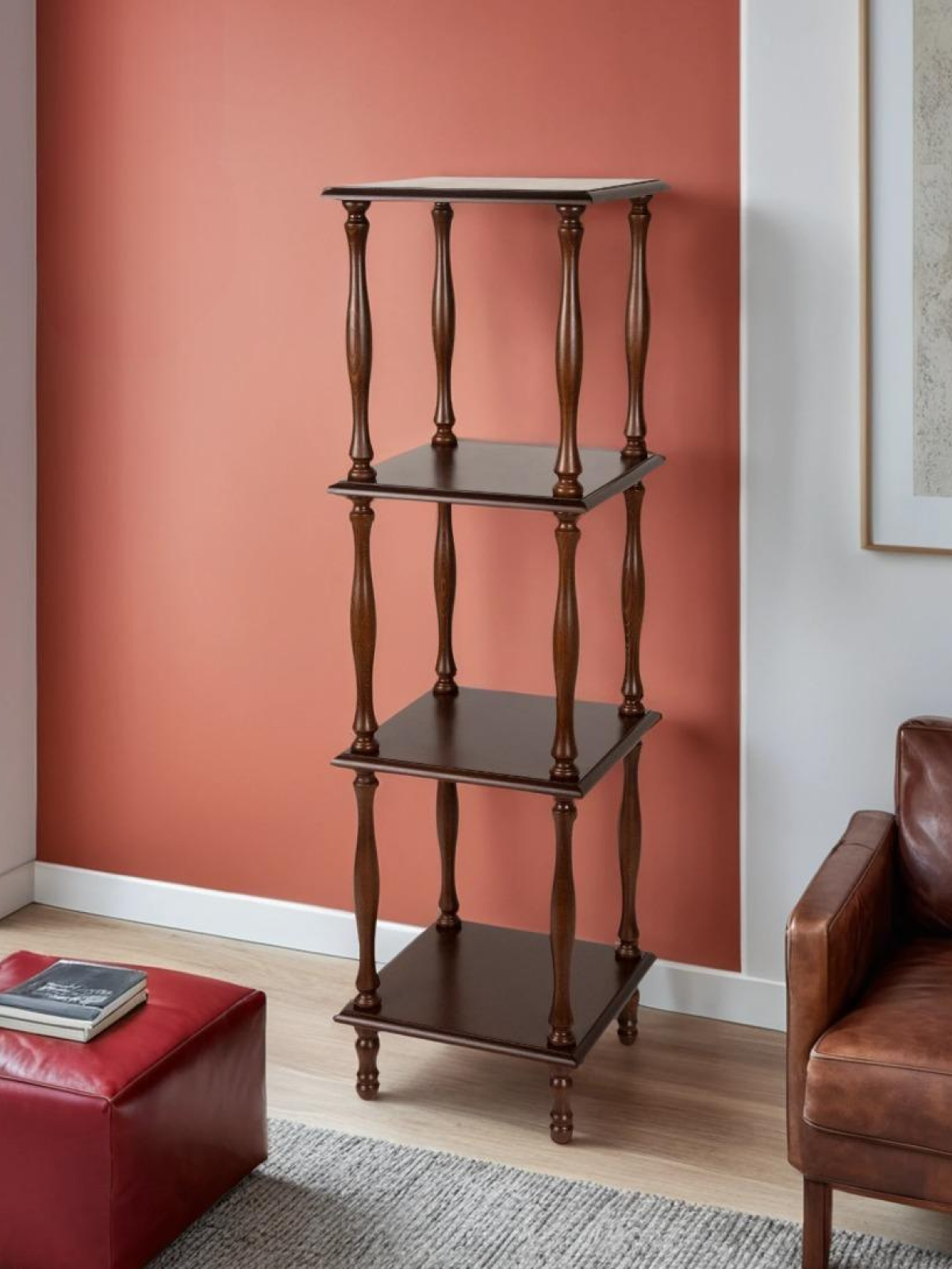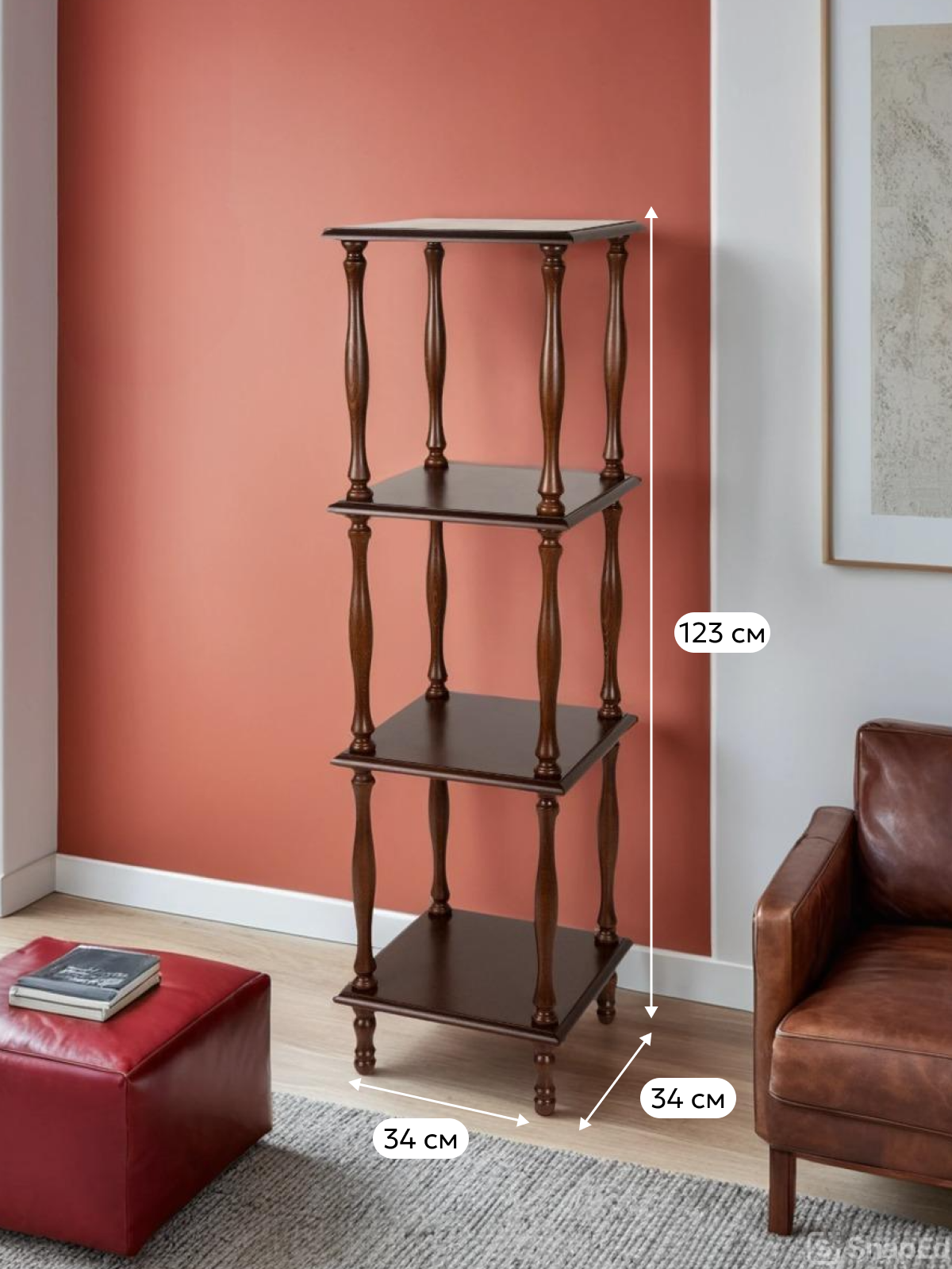 Этажерка K-Home Женева Слим, массив бука, полки МДФ, открытая конструкция, 4 полки, цвет орех: сравнение цен, характеристики, фото, актуальное наличие и цены.